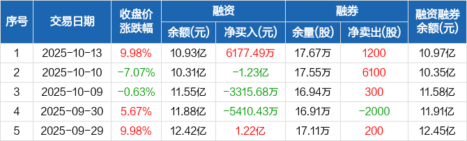 多氟多:融资净买入6177.49万元,融资余额10.93亿元(10-13)