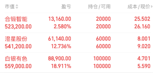 白银有色:作为有色板块里面的龙头个股,昨天继续走出了连板向上的走势,尾盘收出涨停,而且技术结构形态换手板成功,非常的强势,有望成为这一轮涨价驱动下的龙头标的,所以在大结构形态向上的情况之下,有了冲击5连板的动能。今天非常的关键,只要连板,那么就有5板的潜能。所以在此情况之下。涨停则拥有,断板则撤退。