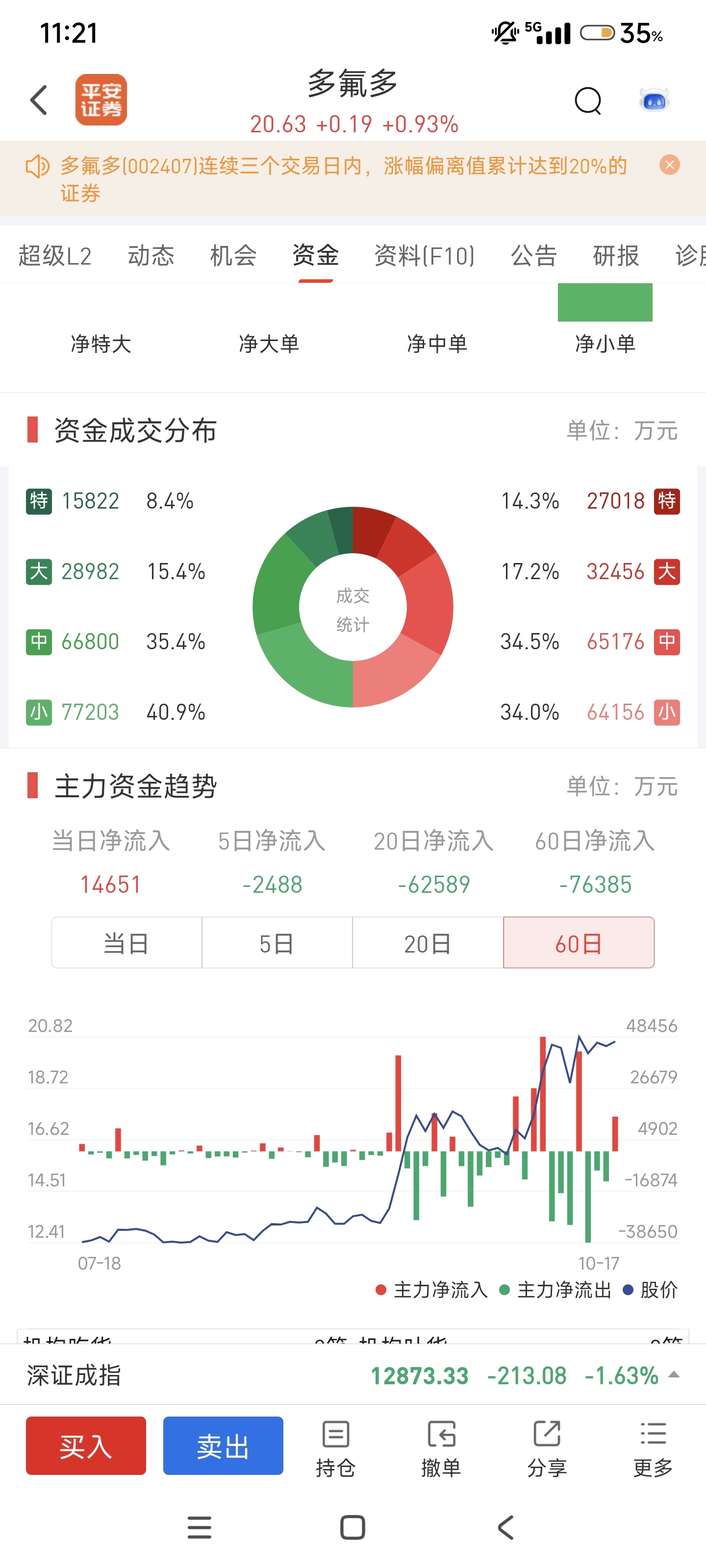 $多氟多(SZ002407)$ 主力筹码都没得,三连出后补货,已经补了1.5个亿,谁说主力出货,他有货出?