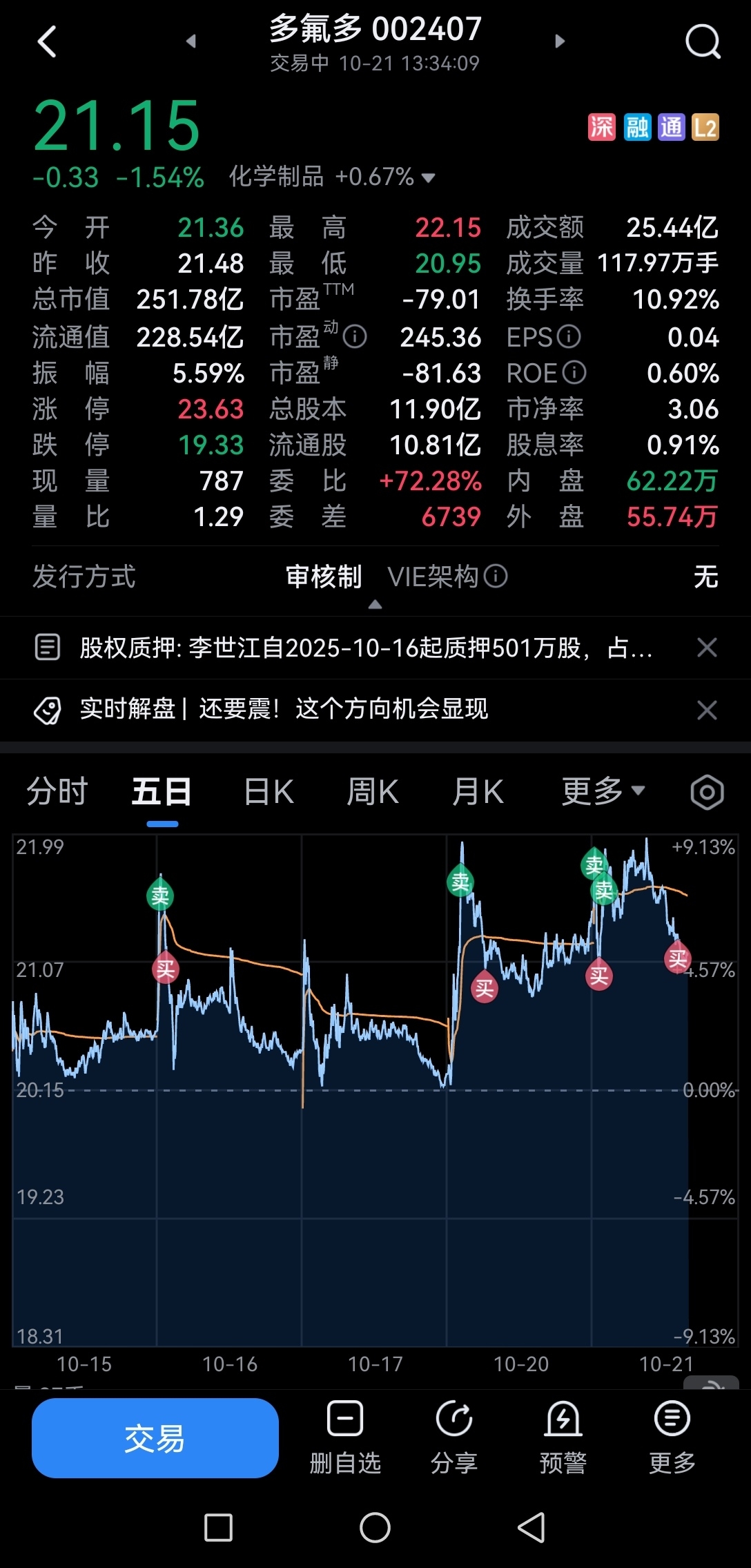 $多氟多(SZ002407)$ 主力大哥好人啊,每天高开低走让做t,谢谢大哥