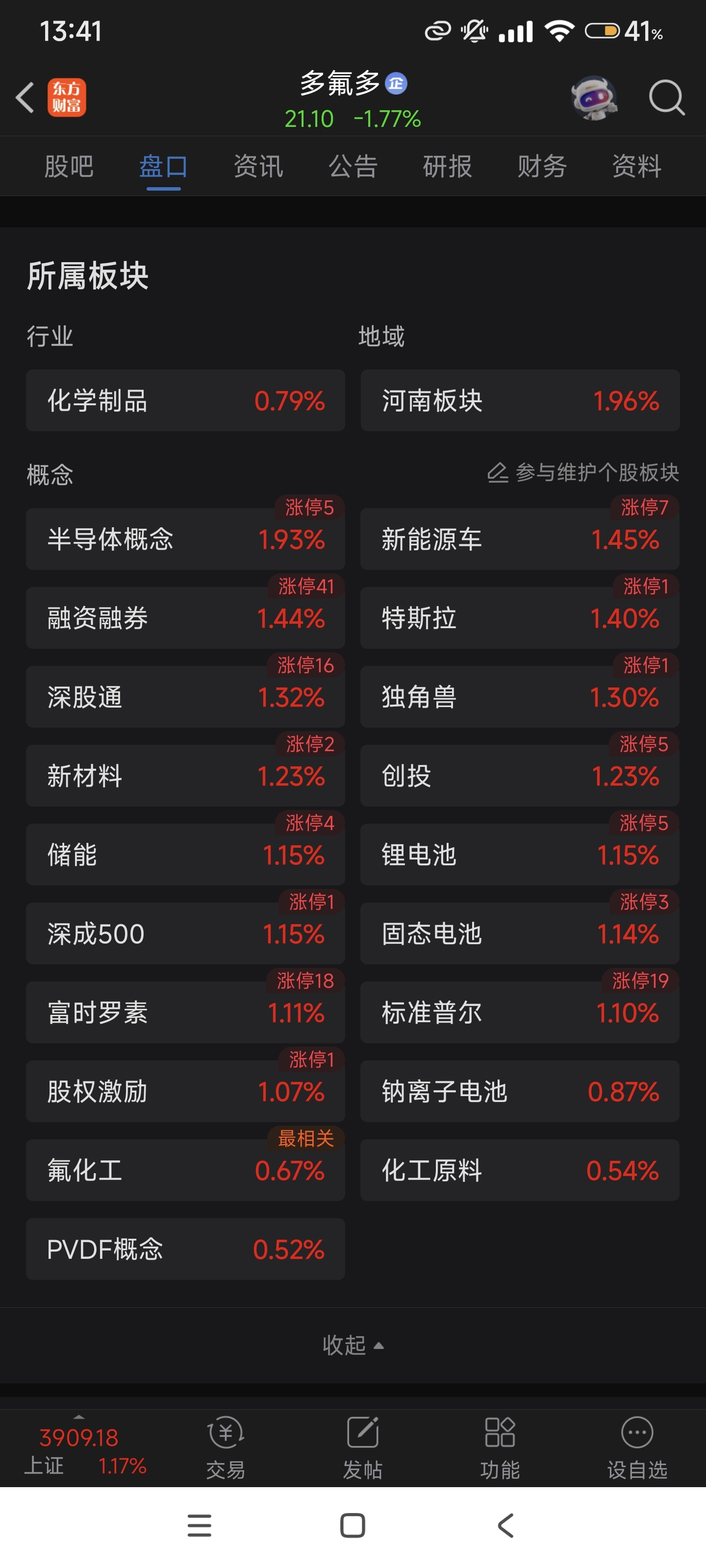 $多氟多(SZ002407)$ 所属概念全部上涨,就多多不涨