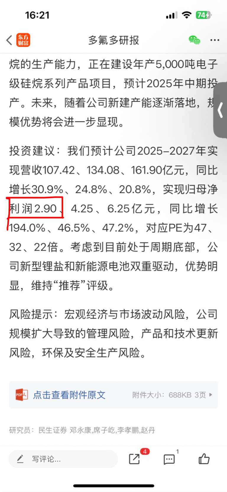 $多氟多(SZ002407)$ 研报预计2025年利润2.9亿,四季度得赚两个多亿才符合预期。。。。。