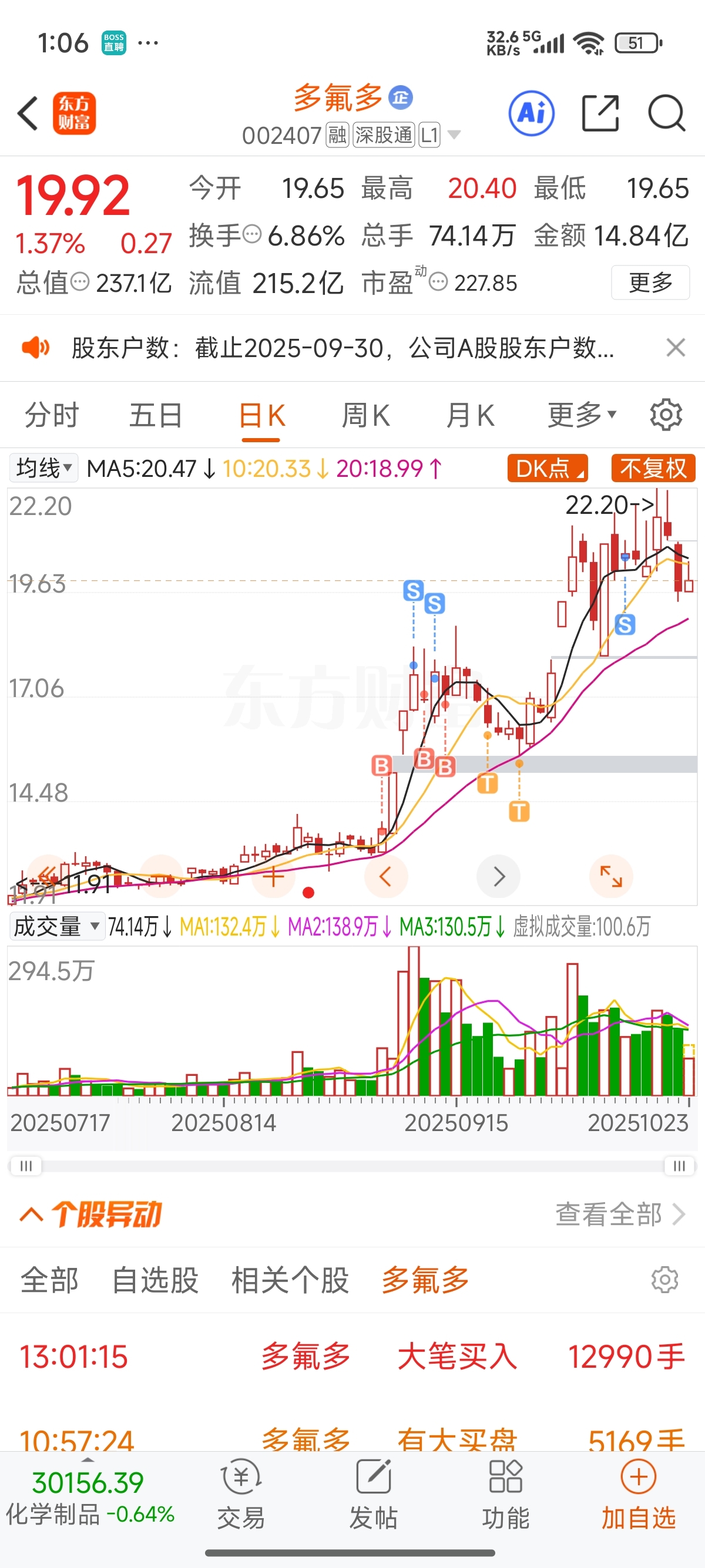 $多氟多(SZ002407)$ 利好差不多兑现了,剩下一点仓位该走了