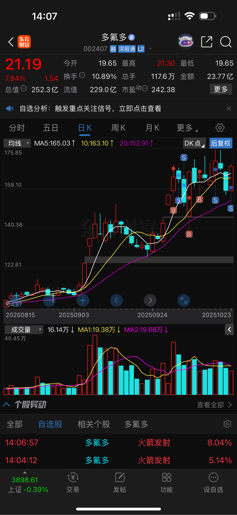 $多氟多(SZ002407)$ 昨天杀那么厉害 我都没跑今天呜呜呜