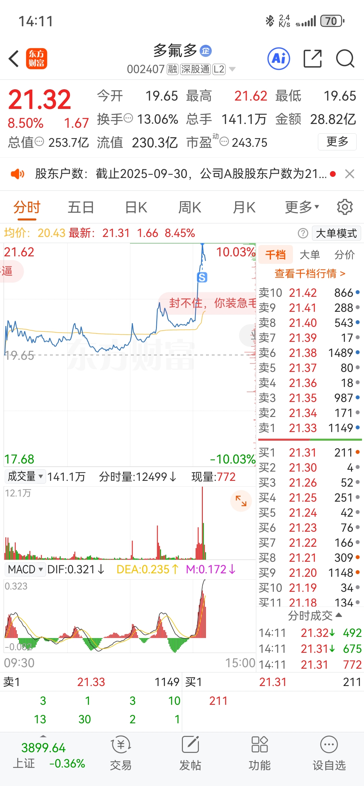 $多氟多(SZ002407)$ 挂了涨停价,竟然成交了。短线玩一下,拜拜!