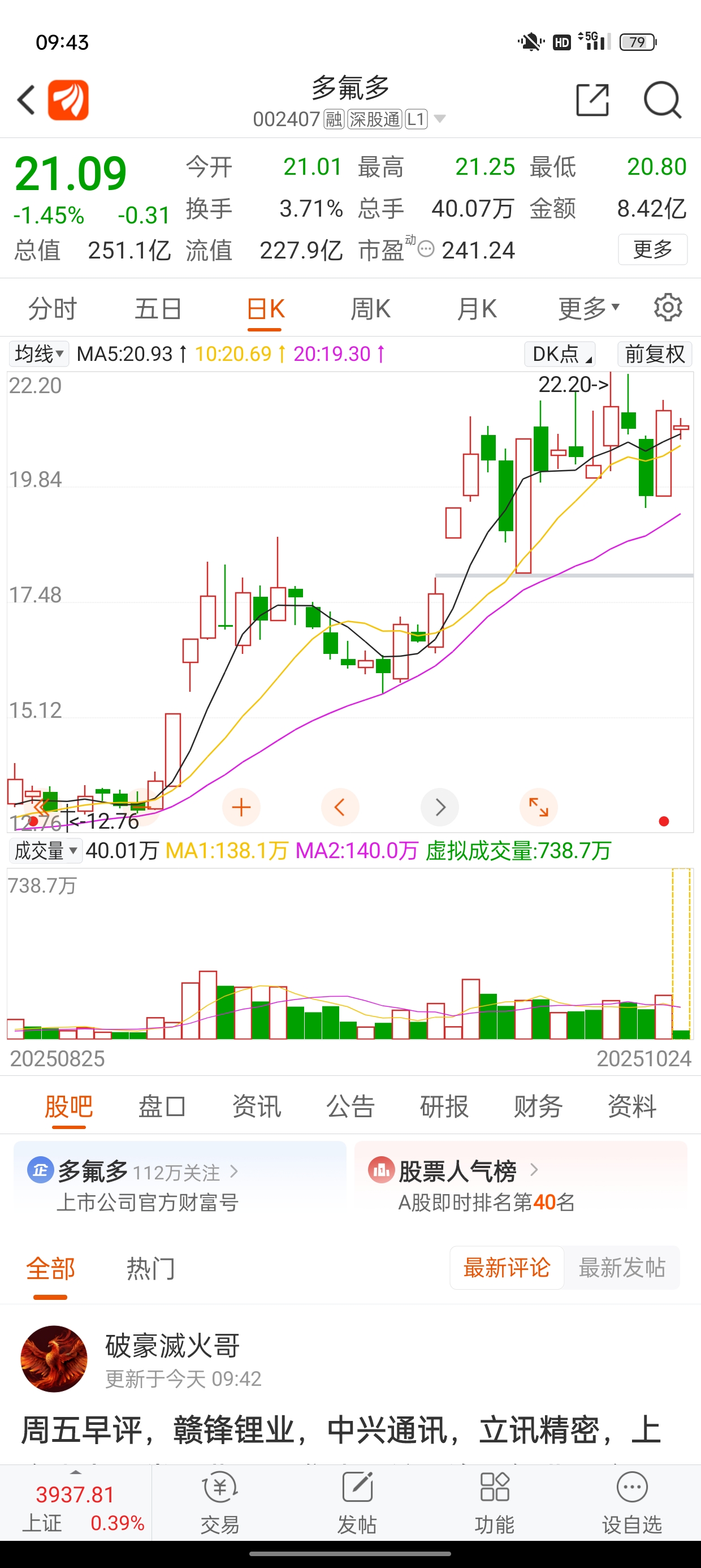 $多氟多(SZ002407)$ 没有成交量,看多的股神们,请举一下您们的发财手。