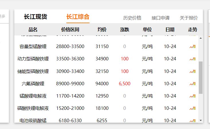 六氟磷酸锂今天长江报价89000-99000均价94000