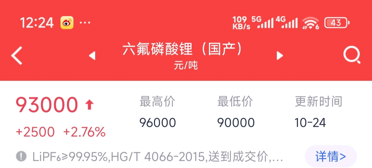 $多氟多(SZ002407)$ 咋的?六氟磷酸锂的价格是被庄家收筹码控盘了?到底这个价格有没有成交量!难道现货都囤积控盘了????为什么股价没反应???