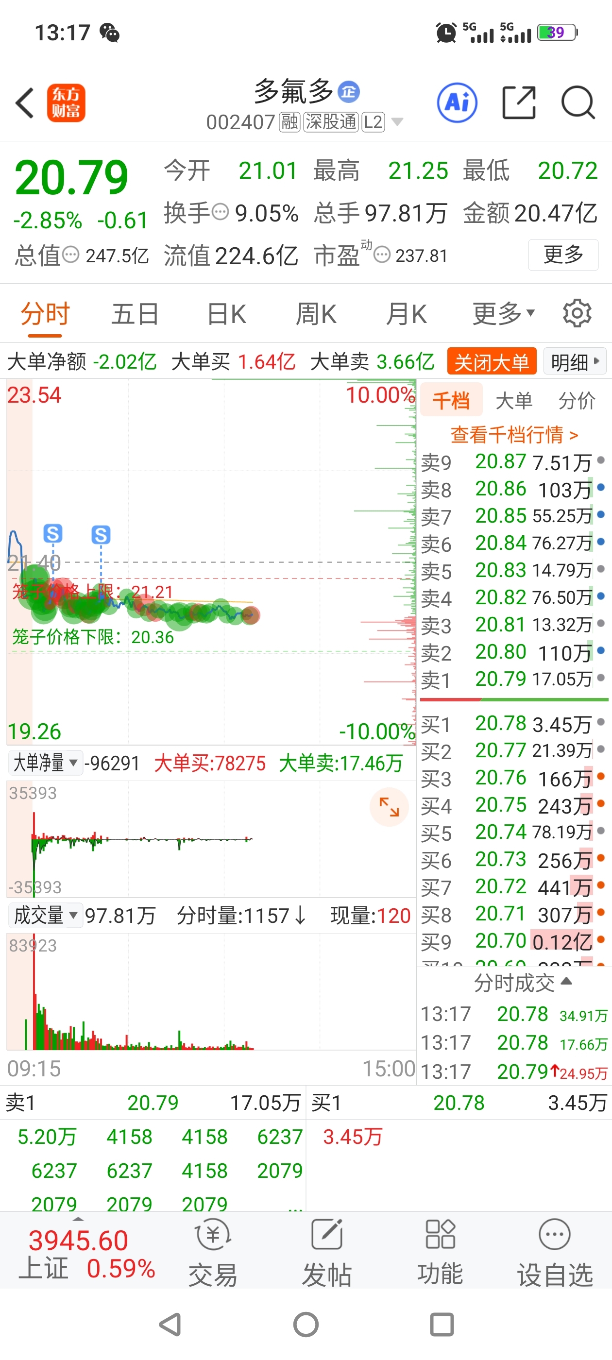$多氟多(SZ002407)$ 周一跌到7个点再来建仓