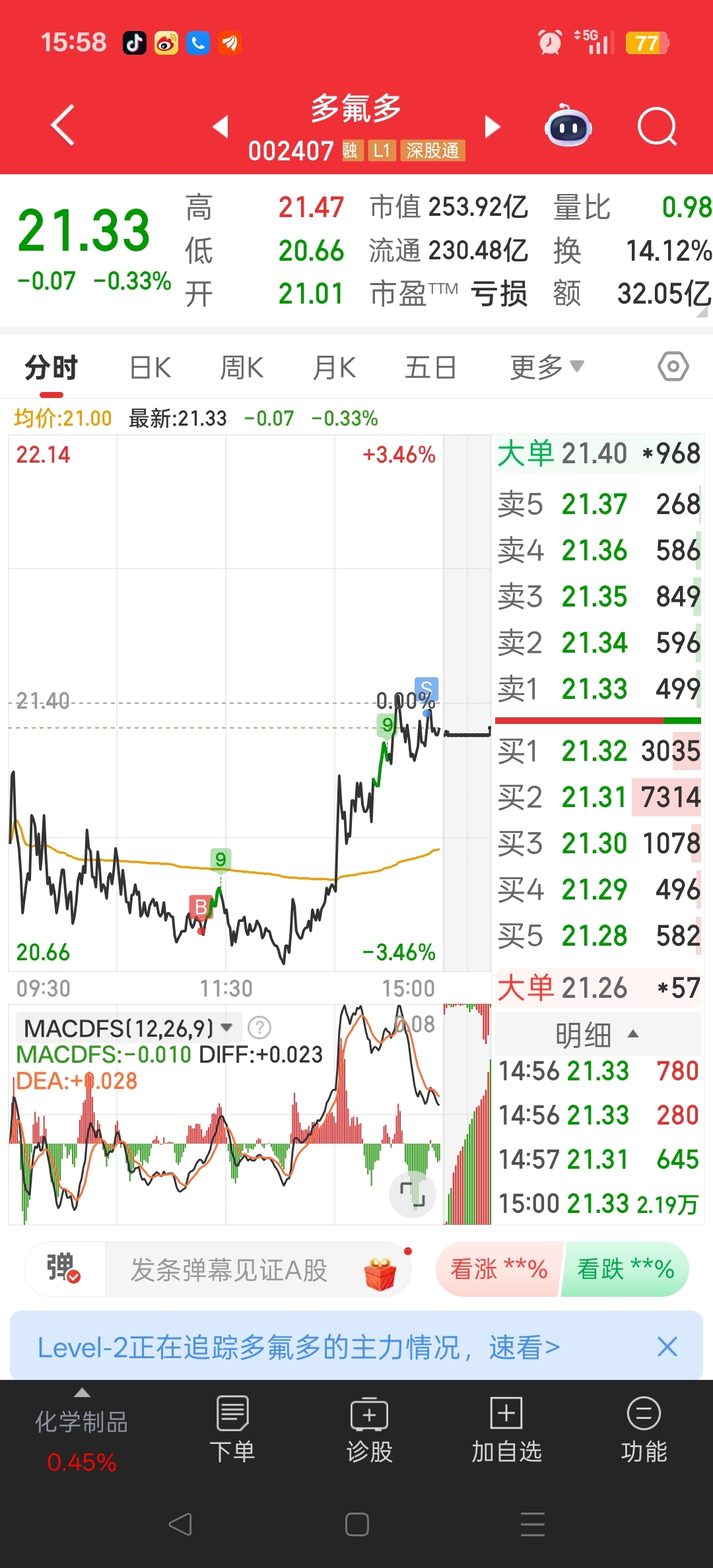 $多氟多(SZ002407)$ 但凡主力有点格局拉升一波股价,让我多赚点,我也不至于做T赚这么几个点的差价。。。