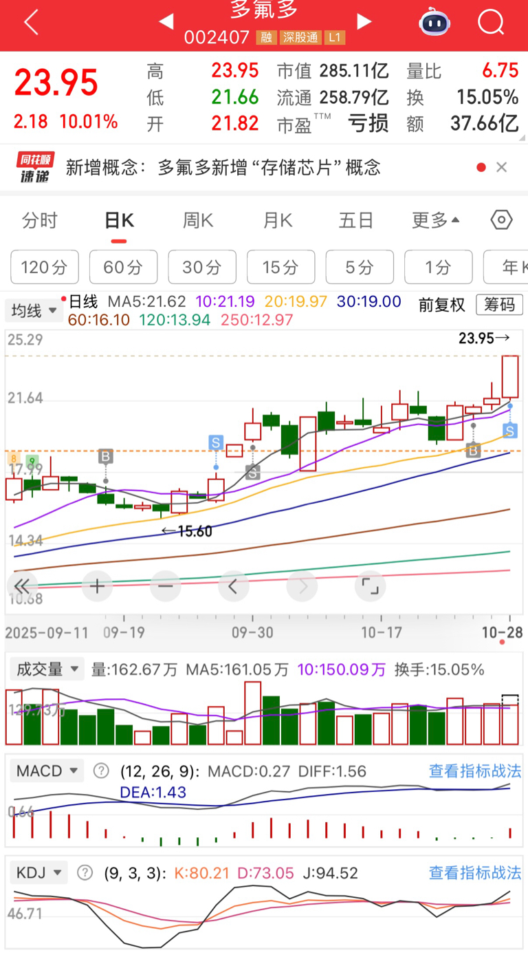 $多氟多(SZ002407)$ 龙头相出来了,主力老是漏单,跟着减一半