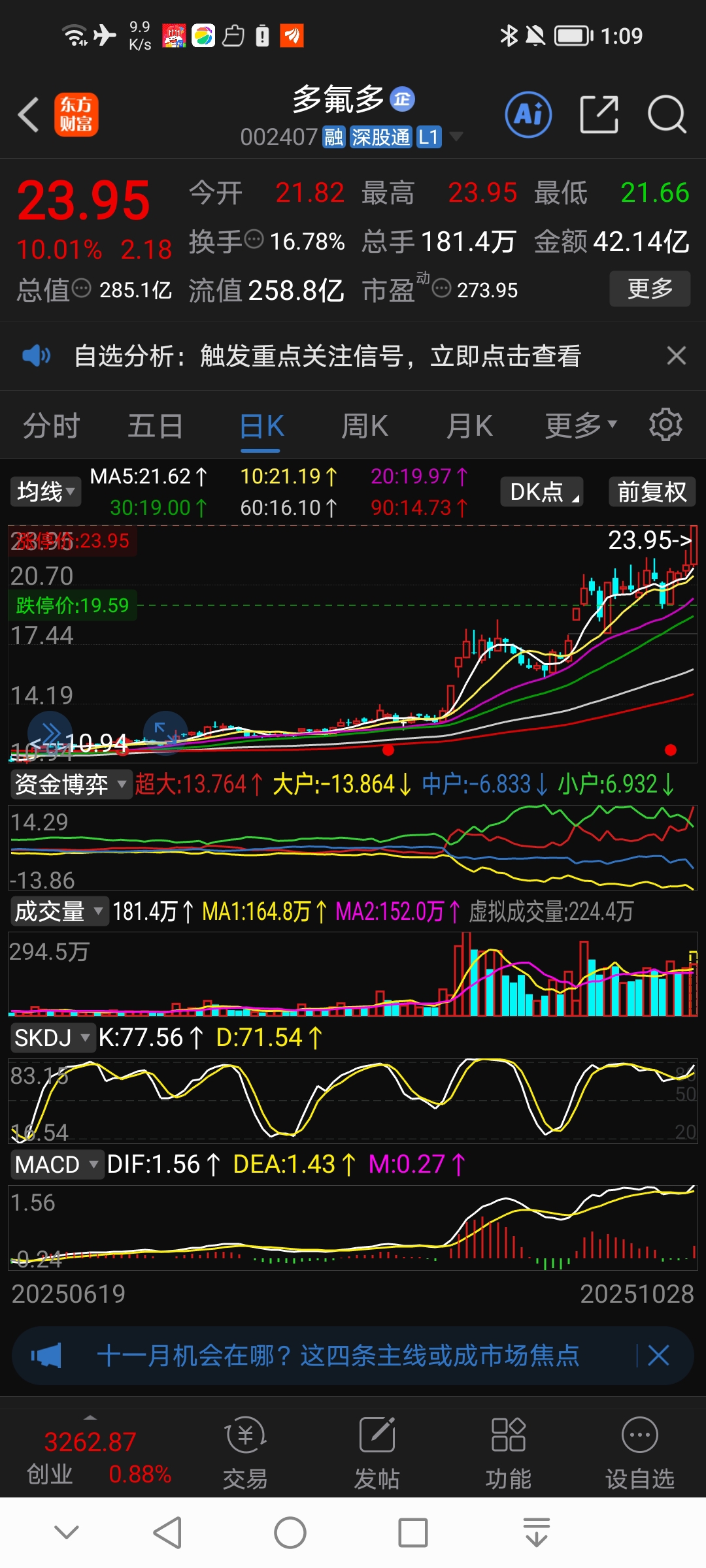 电解液材料多氟多创新高多氟多天际股份涨停恩捷股份止跌日线级别调整顶底轮回,主力资