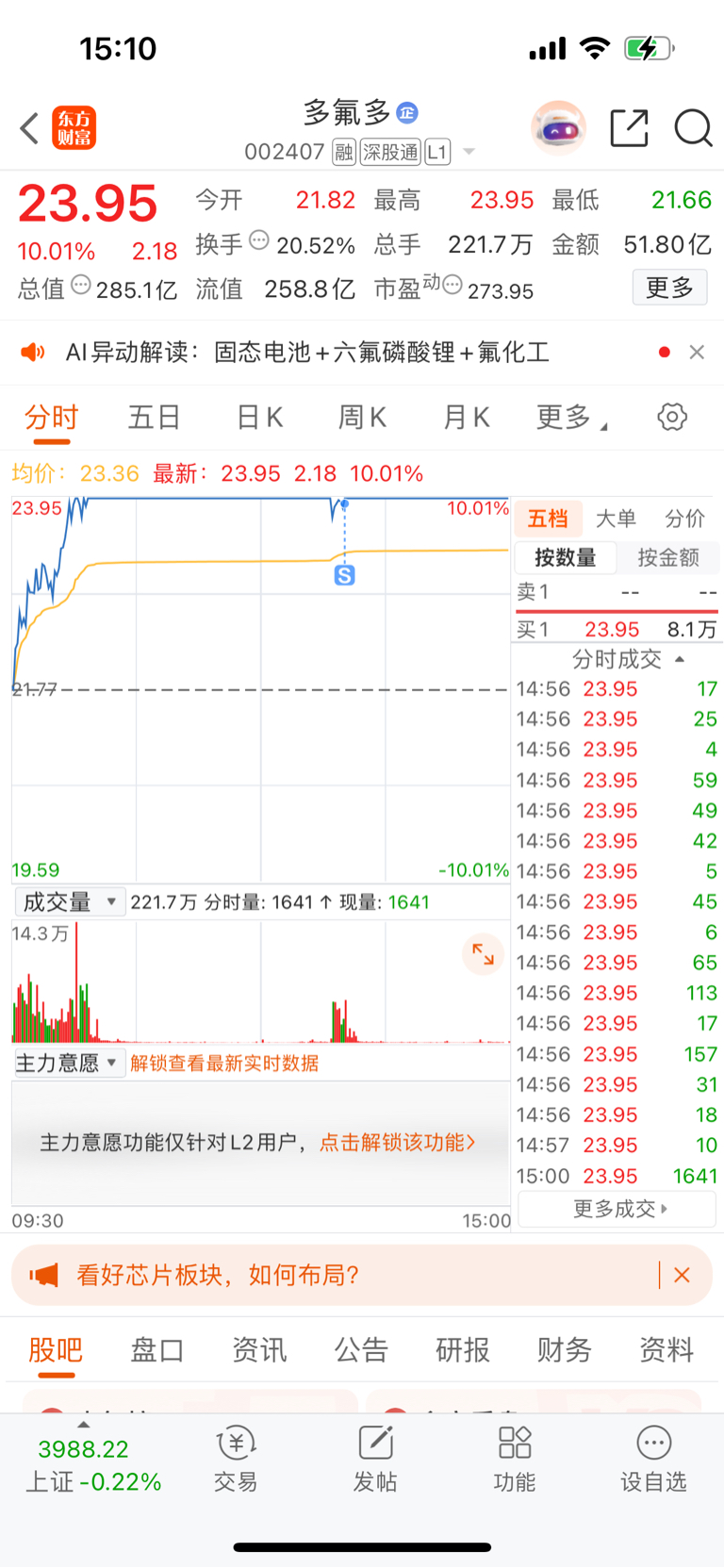 $多氟多(SZ002407)$ 卖飞了,明天应该还会大涨,祝留下的兄弟发财