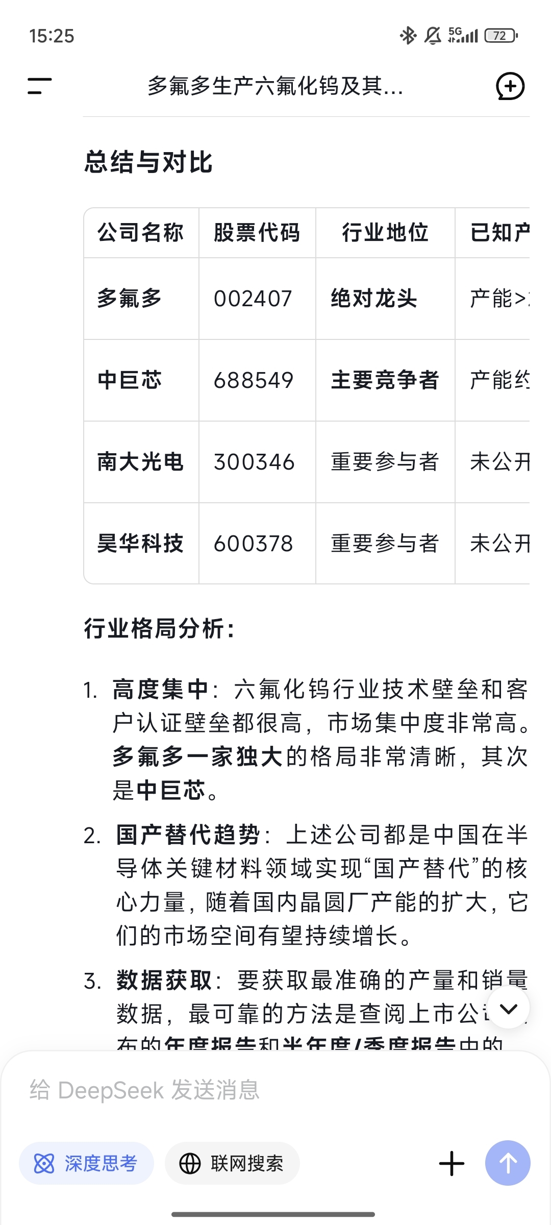 $多氟多(SZ002407)$ ds说多氟多是国内六氟化钨龙头