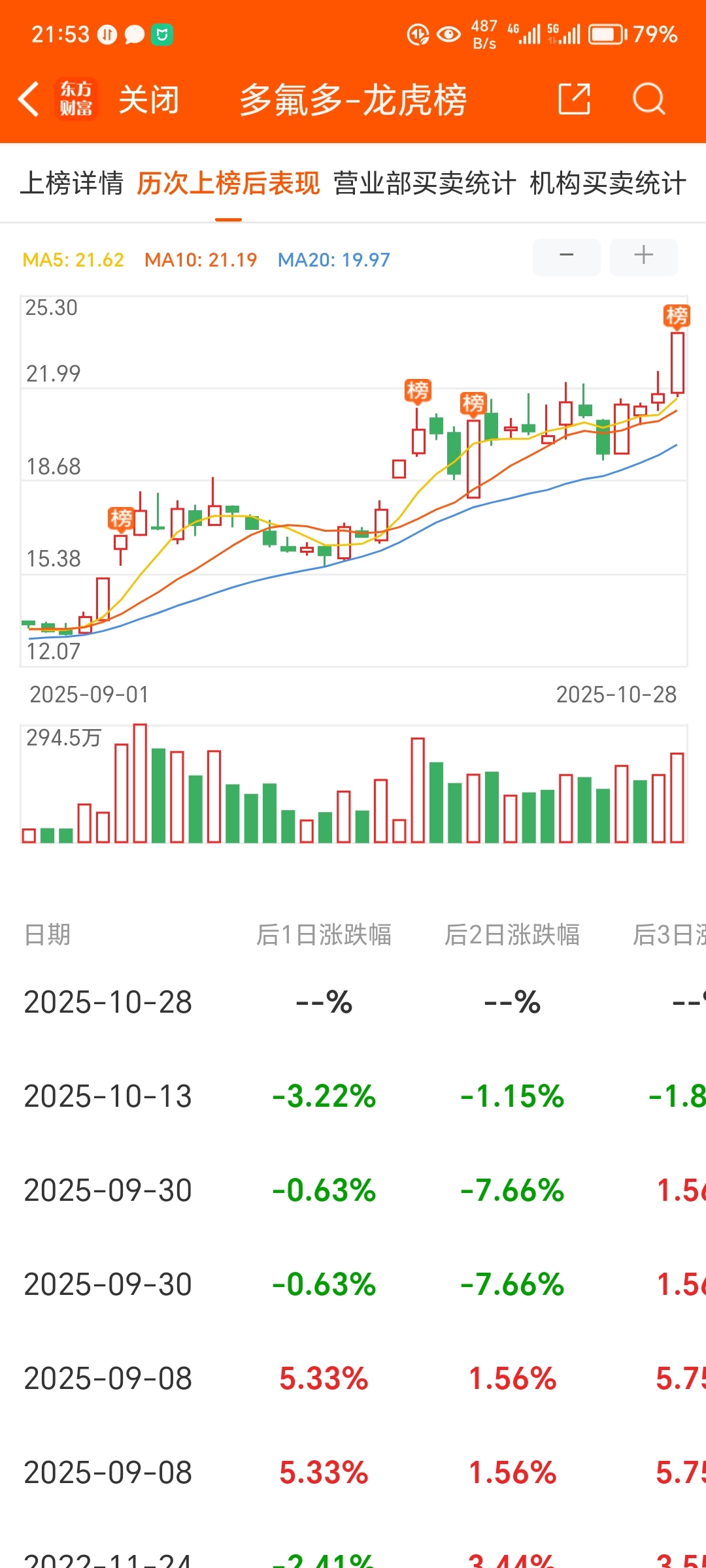 $多氟多(SZ002407)$ 几次上榜统计