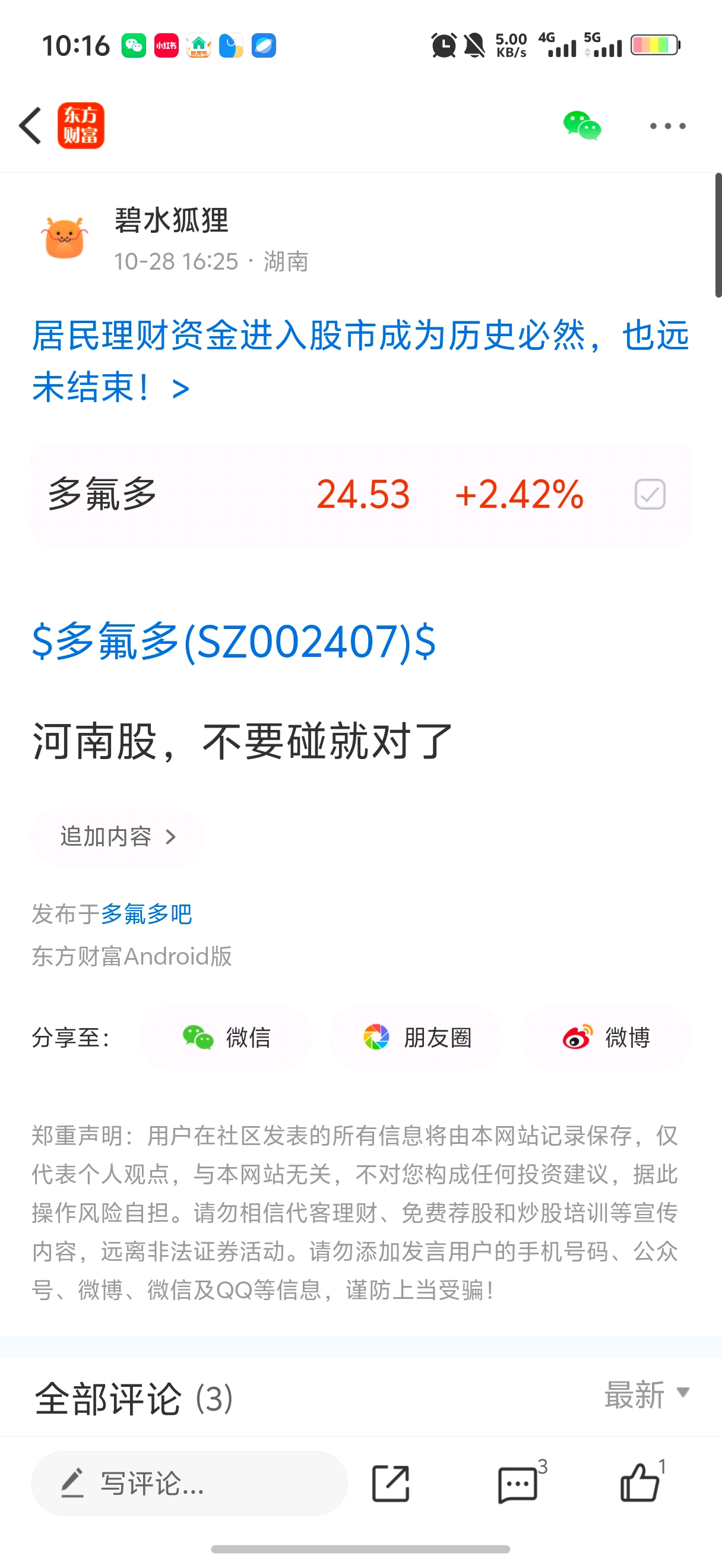 温馨提示: 1.根据《证券法》规定,禁止编造、传播虚假信息或者误导性信息,扰乱证券市场;2.用户在本社区发表的所有资料、言论等仅代表个人观点,与本网站立场无关,不对您构成任何投资建议。用户应基于自己的独立判断,自行决定证券投资并承担相应风险。《东方财富社区管理规定》