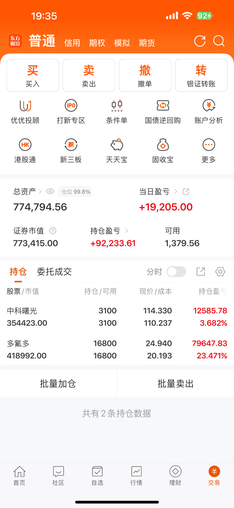 70万短炒,收盘总值77.4,目前大势在我,优势在我