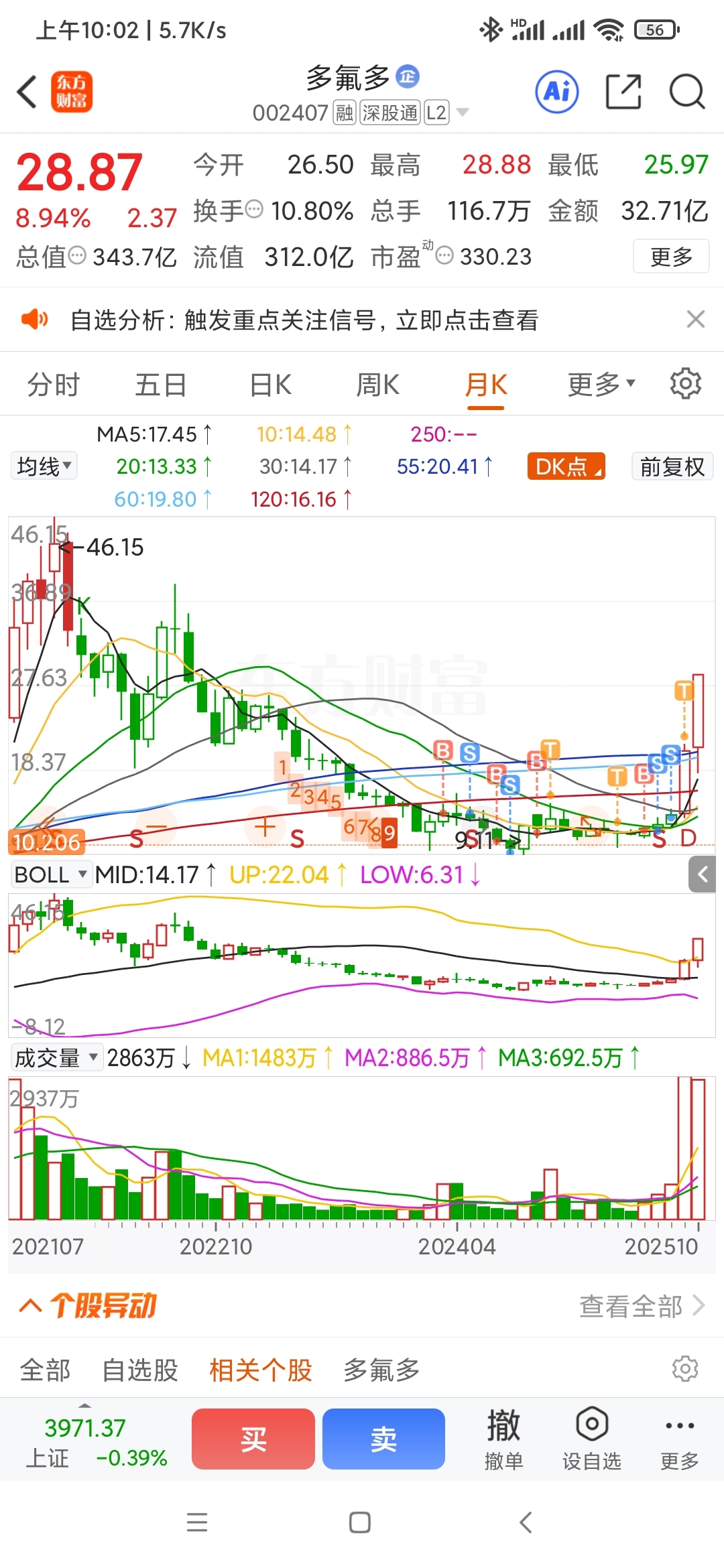 $多氟多(SZ002407)$ 大家预测下,多多准备涨到多少。