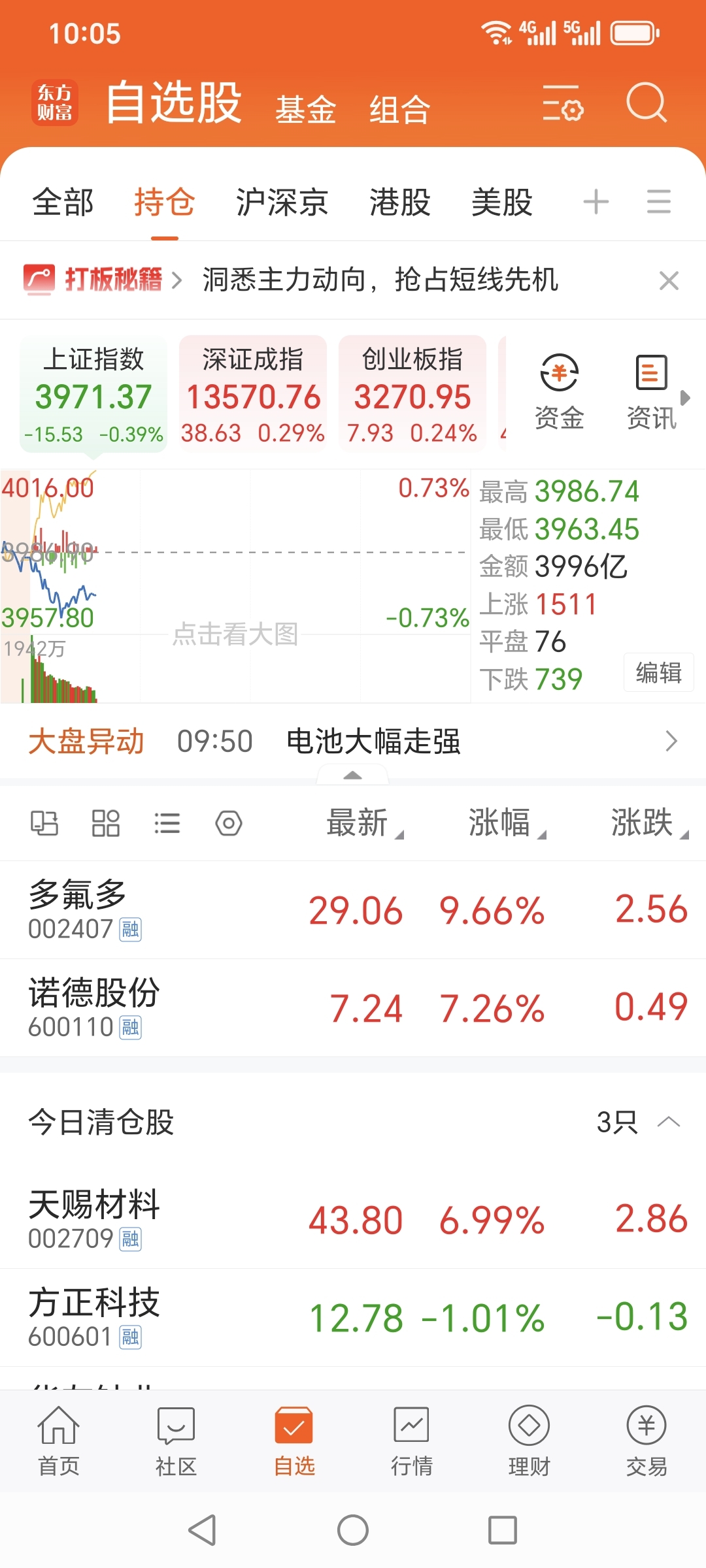 $多氟多(SZ002407)$ 前天晚上体系完善重大突破,那么昨天开始验证,昨日买入天赐材料,华友钴业,昨天买入后收盘是没盈亏的,但是今天溢价都有的,并且天赐材料溢价很高,那么以后就是按这套体系每天重复去执行即可!
