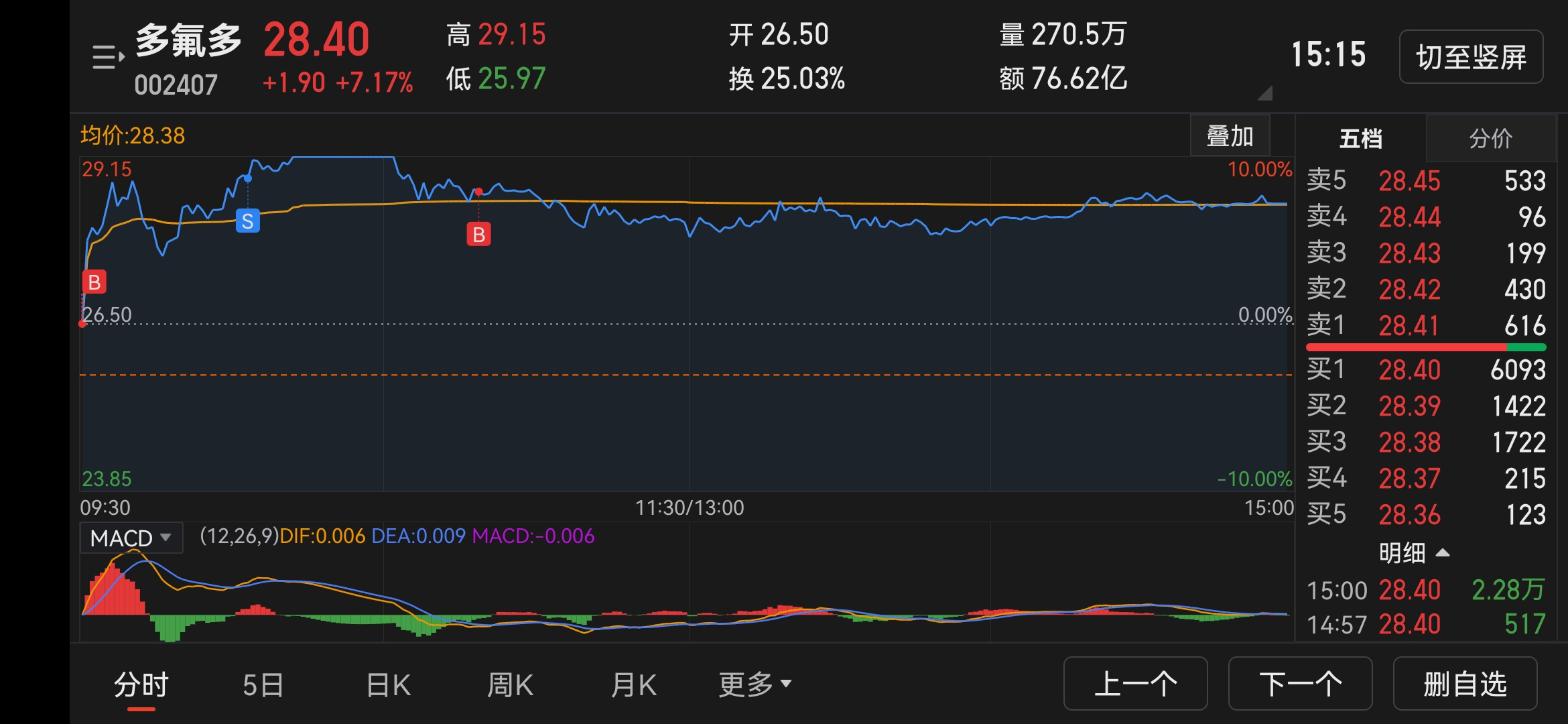卖出后28.55、28分批次再接回;报价27.8未成交