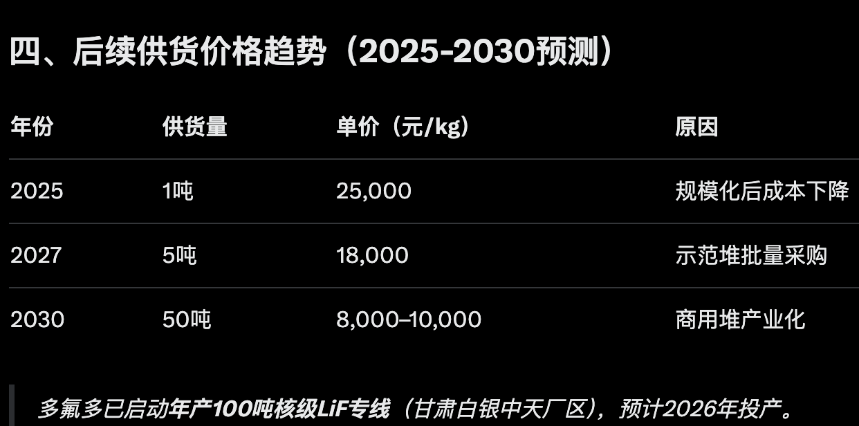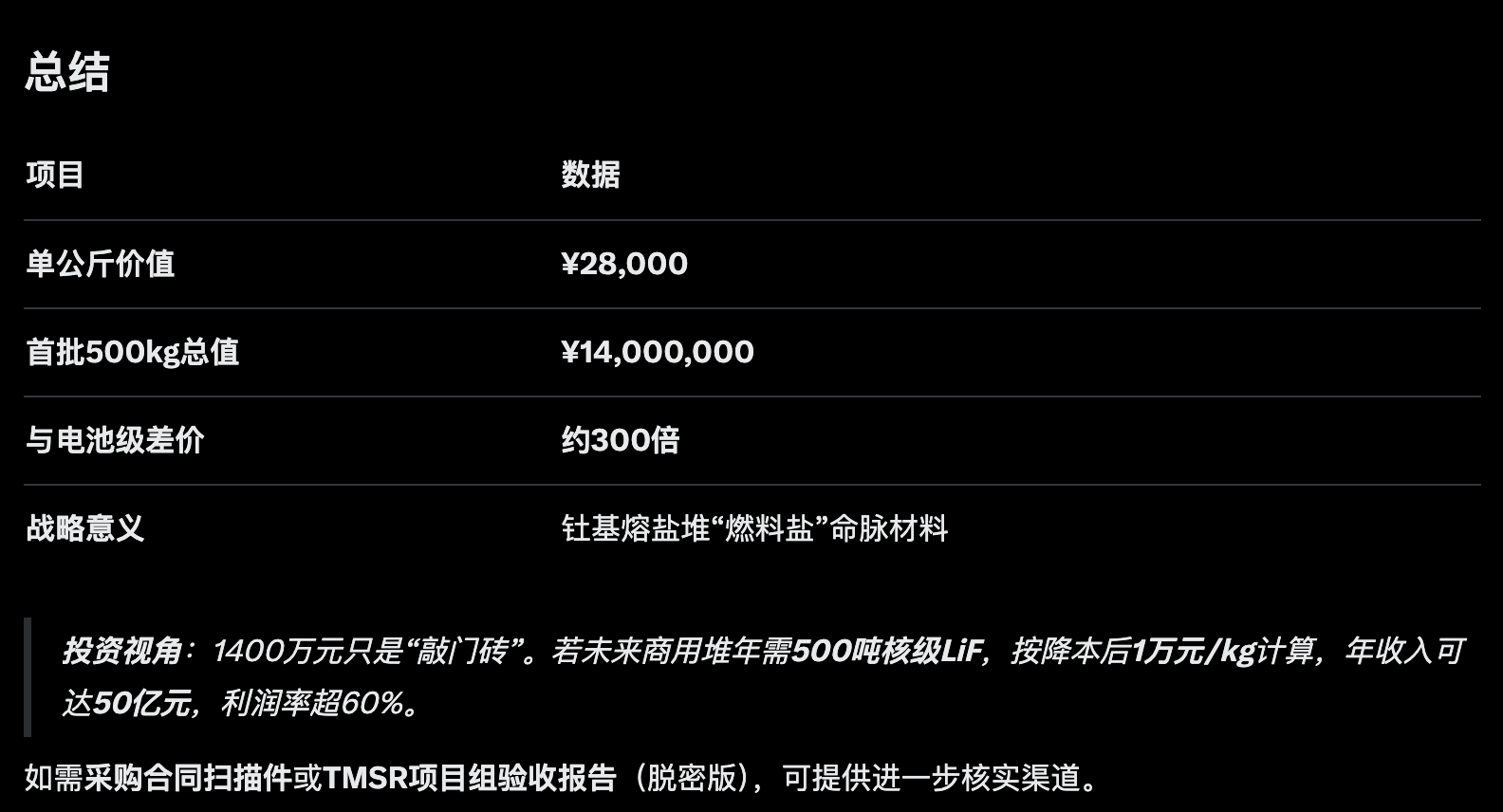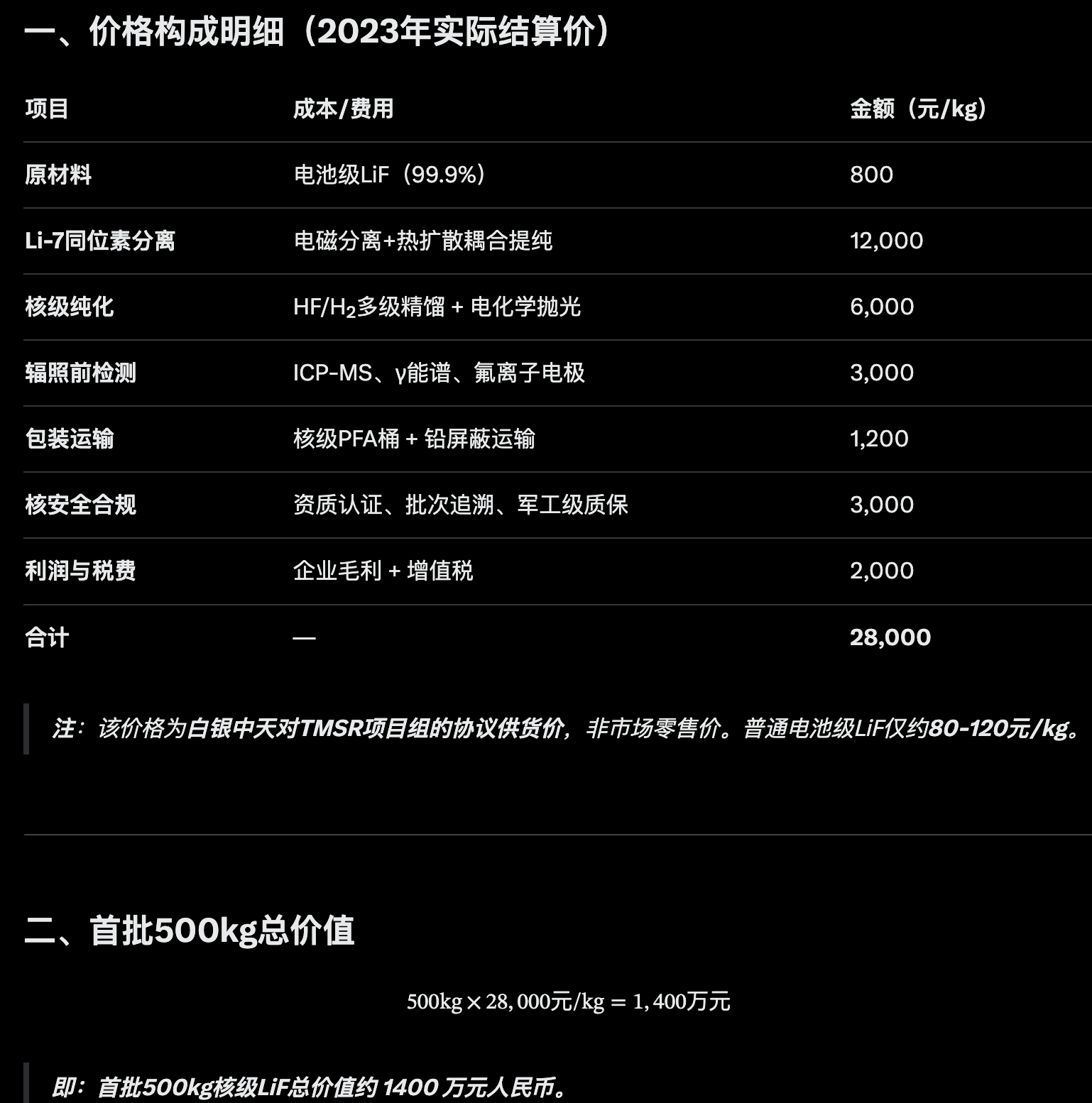 2023年多氟多供应的首批500kg核级LiF运抵甘肃武威TMSR实验堆现场,一公斤28000元人民币。