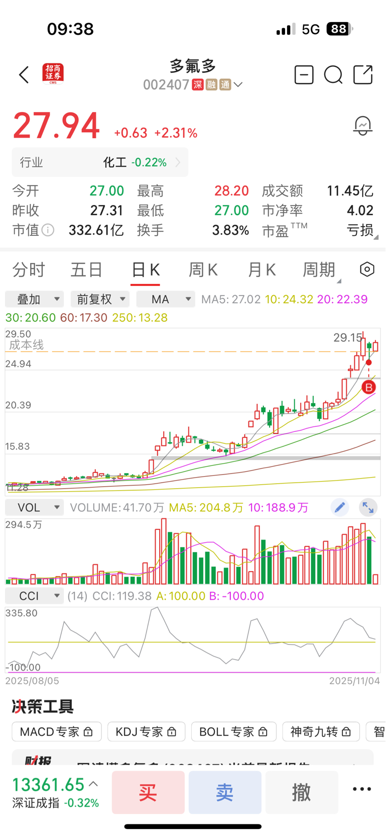 $多氟多(SZ002407)$ 今天能拉5个点我就跑了