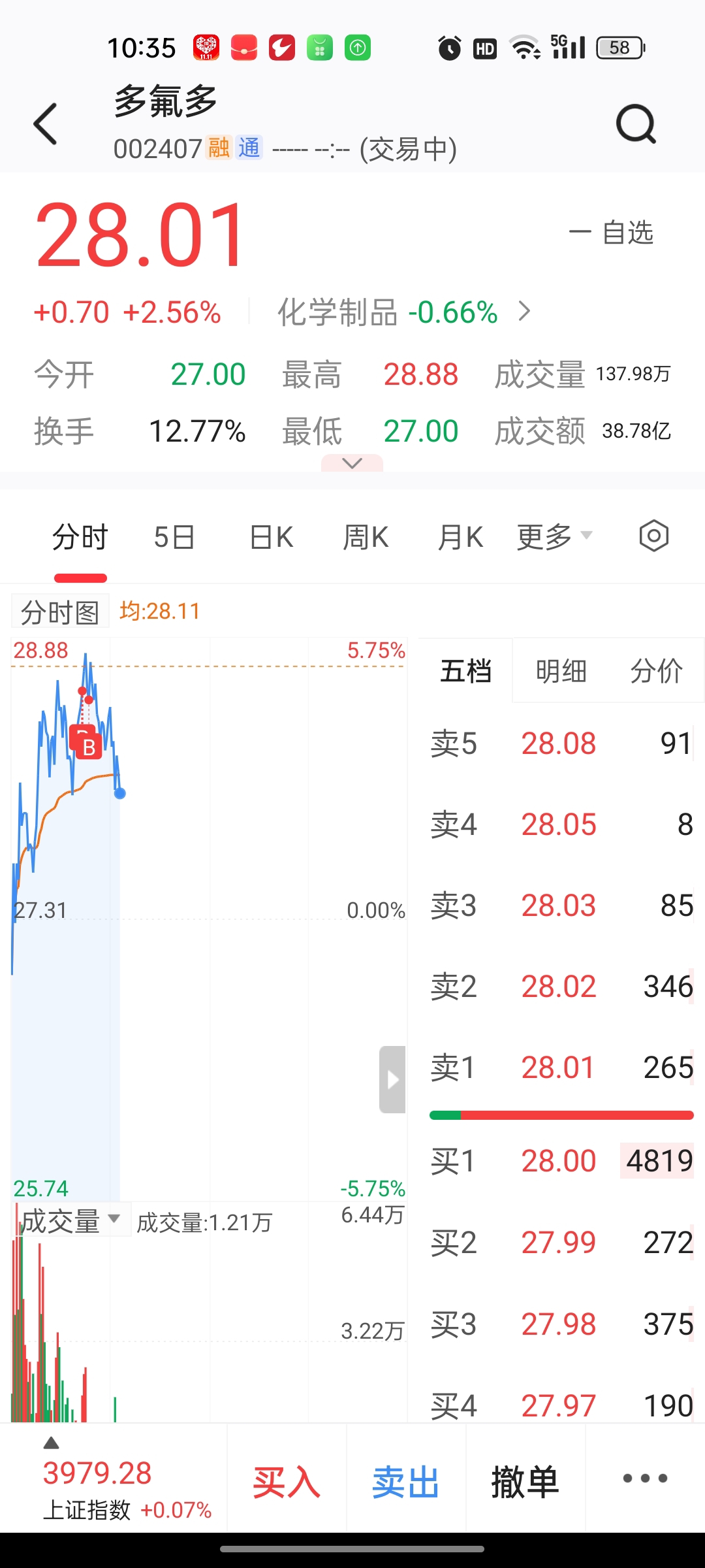 $多氟多(SZ002407)$ 接盘侠来了,主力是看我买了几手