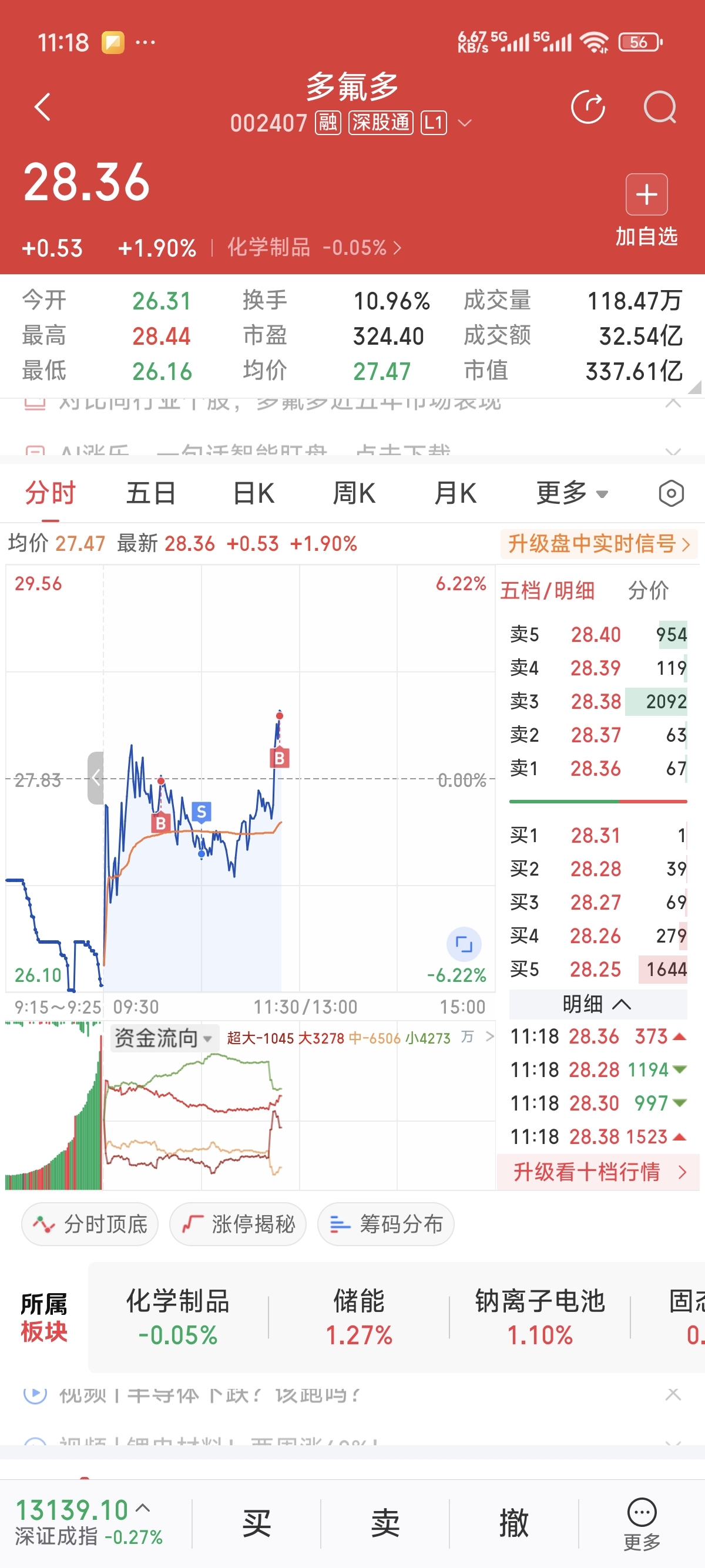 $多氟多(SZ002407)$ 我一个泰山压顶!谁也别想赚钱!