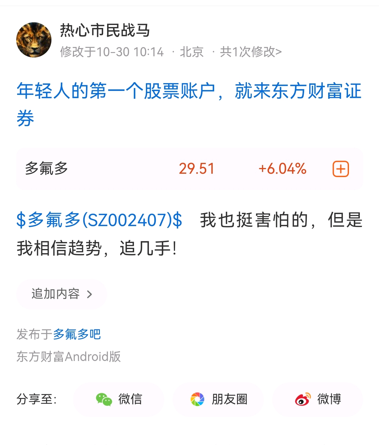 $多氟多(SZ002407)$ 趋势是市场决定的,所以耐心就是你应该做的!