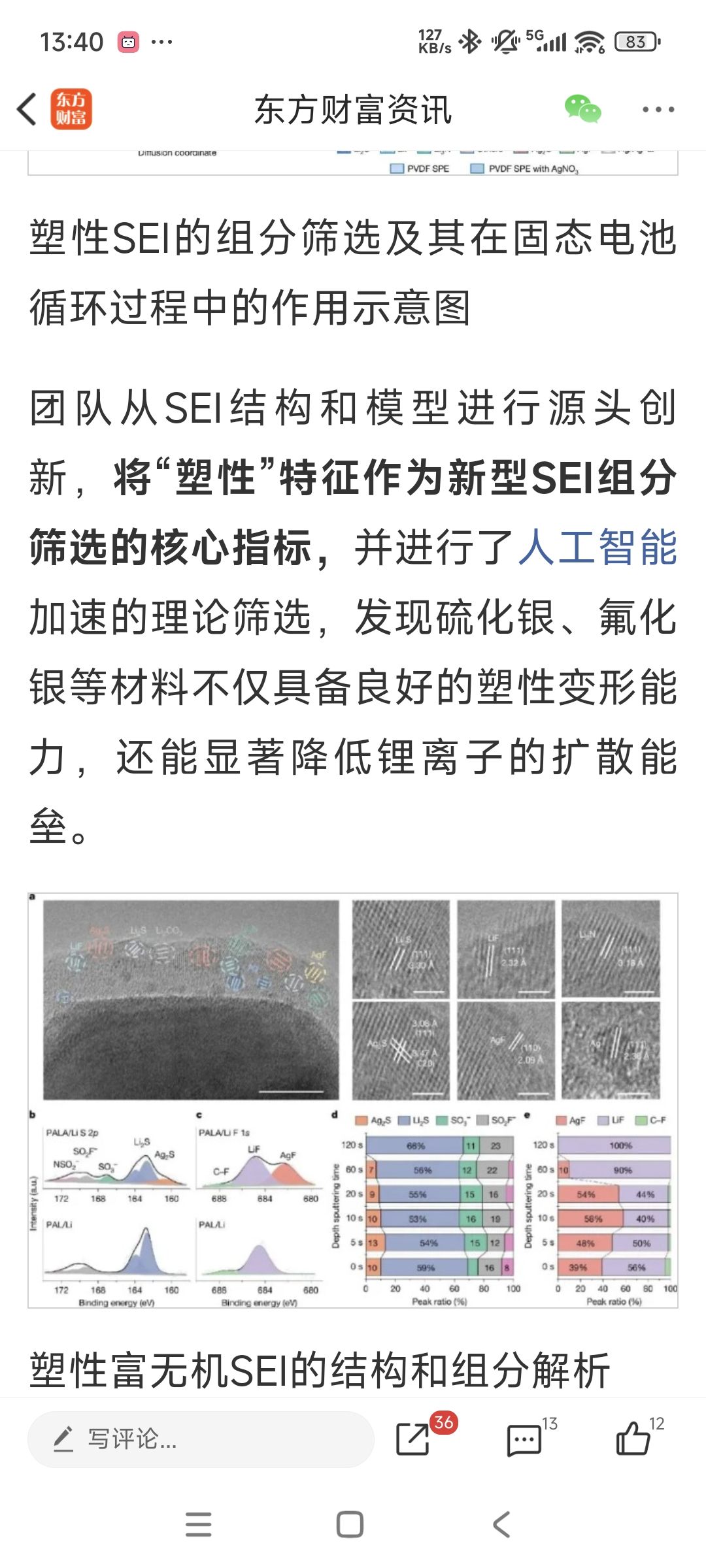 团队从SEI结构和模型进行源头创新,将“塑性”特征作为新型SEI组分筛选的核心指标,并进行了人工智能加速的理论筛选,发现硫化银、氟化银等材料不仅具备良好的塑性变形能力,还能显著降低锂离子的扩散能垒。