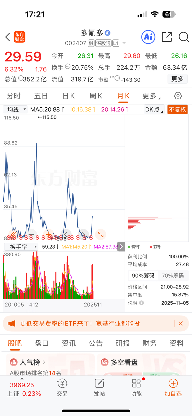 $多氟多(SZ002407)$ 真正高点在100多,大家不要慌