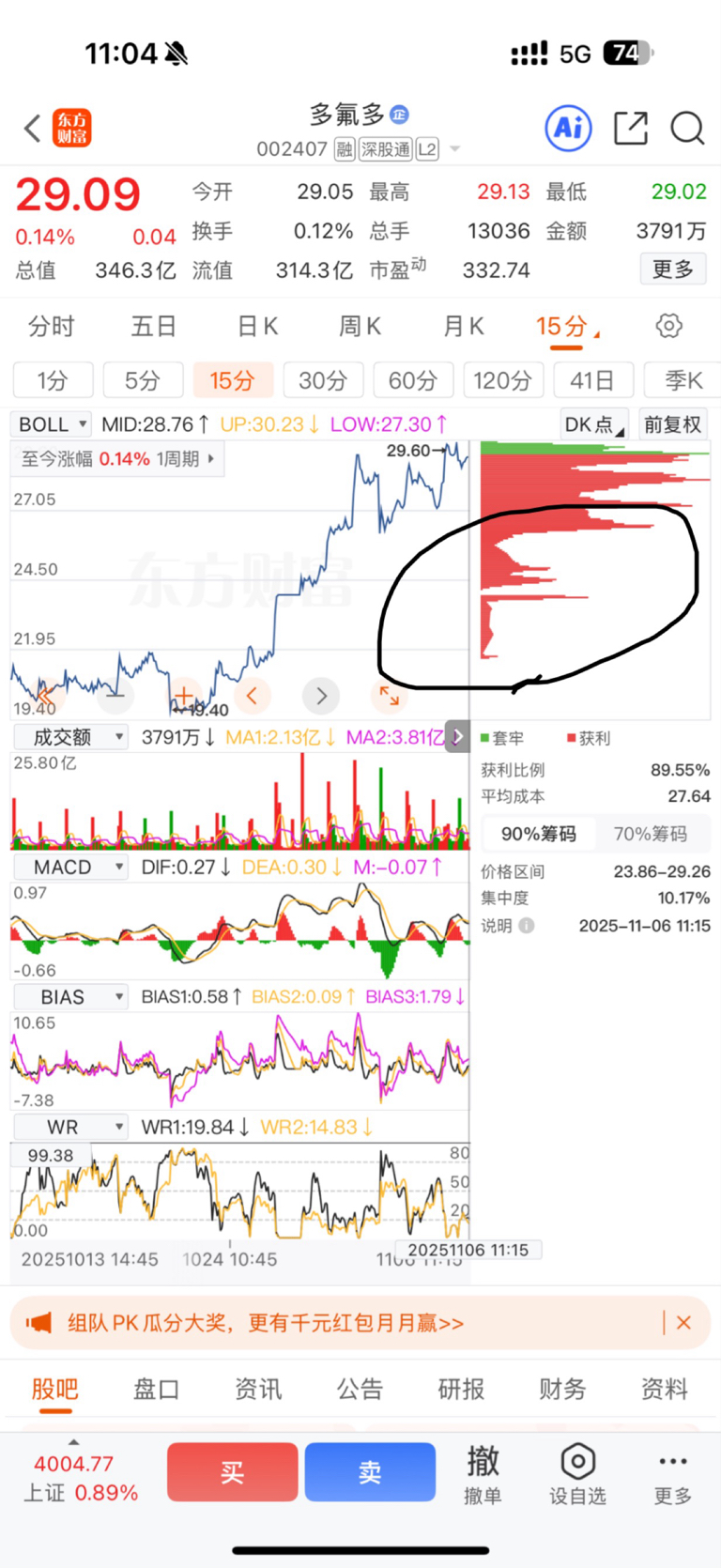 $多氟多(SZ002407)$ 这么大一片获利筹码,我不信主力好心带飞他们,每次起飞都清空的