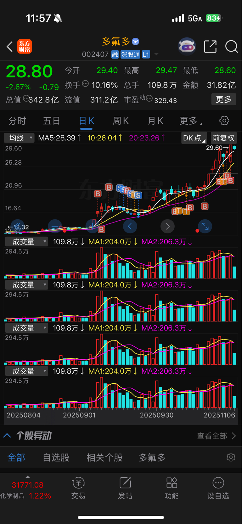 $多氟多(SZ002407)$ 9.8日开仓,已经翻倍都还没走,大家在怕啥