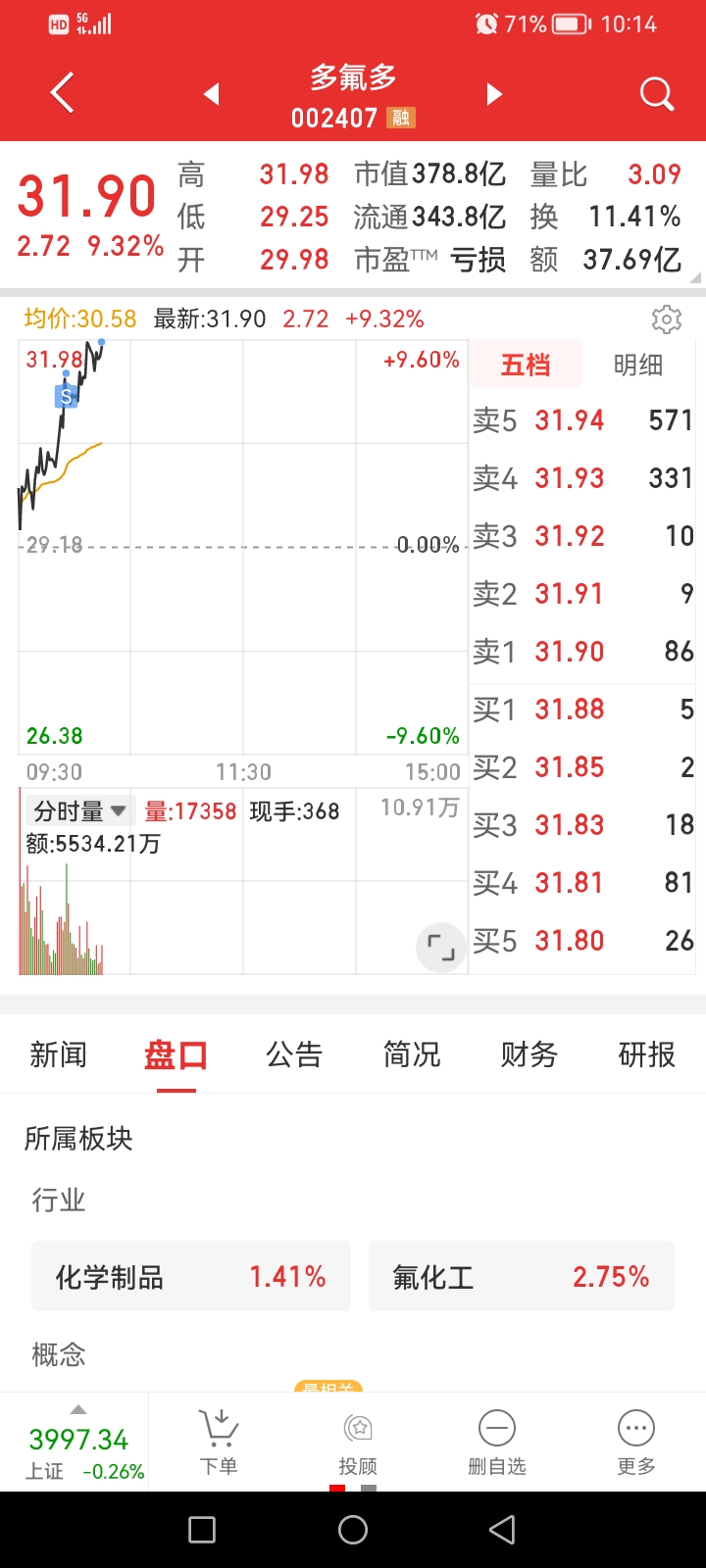 天际玩过两次了,被洗了两次,前天看见都创新高就换个多氟多玩玩,以为会卡个位结果还