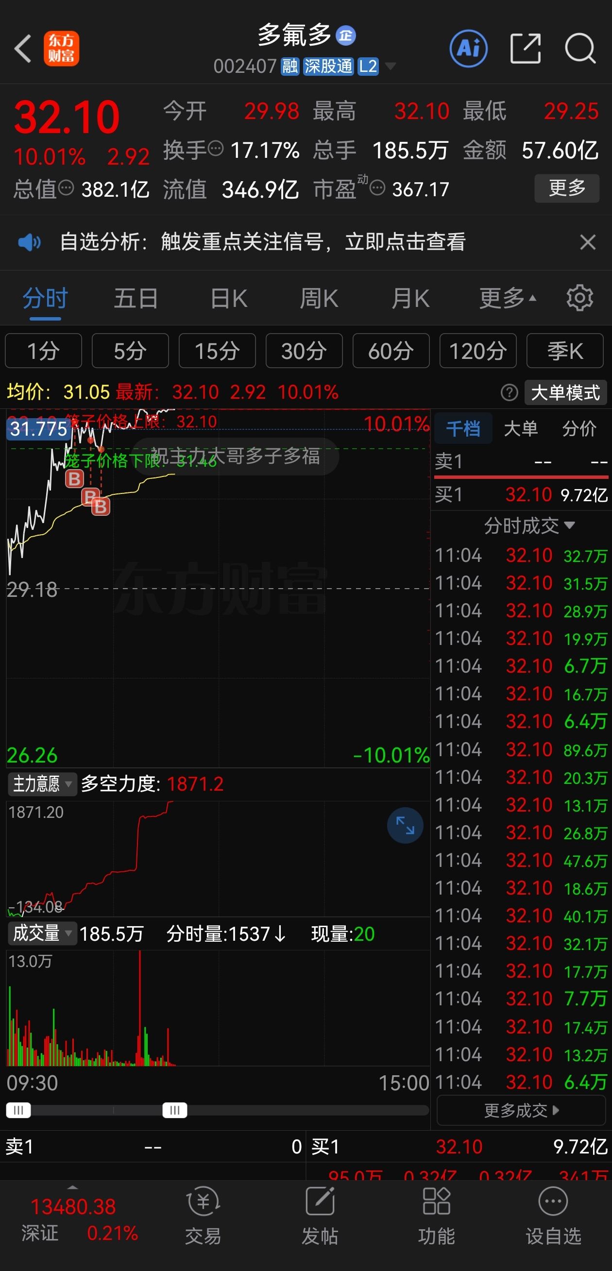 $多氟多(SZ002407)$ 顶板成功,希望明天有溢价!