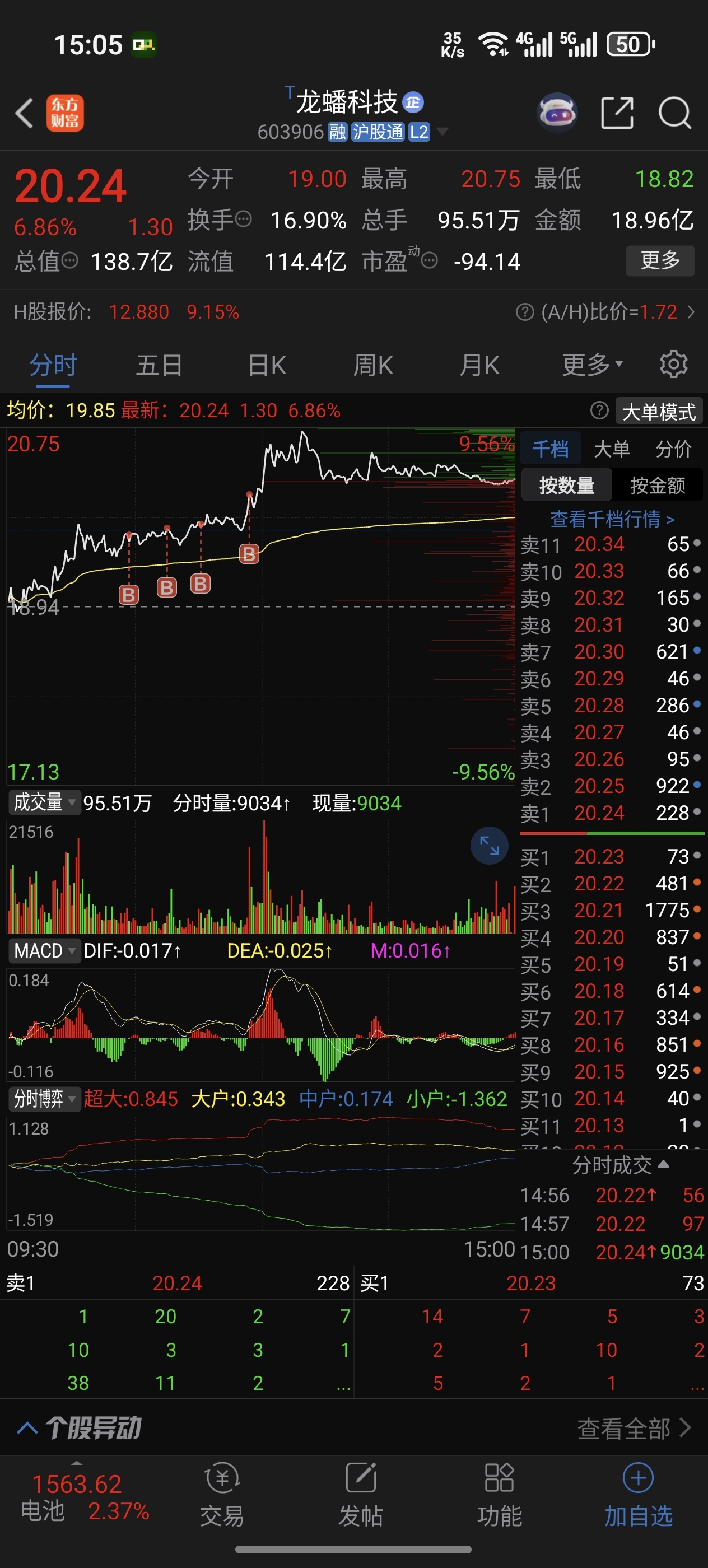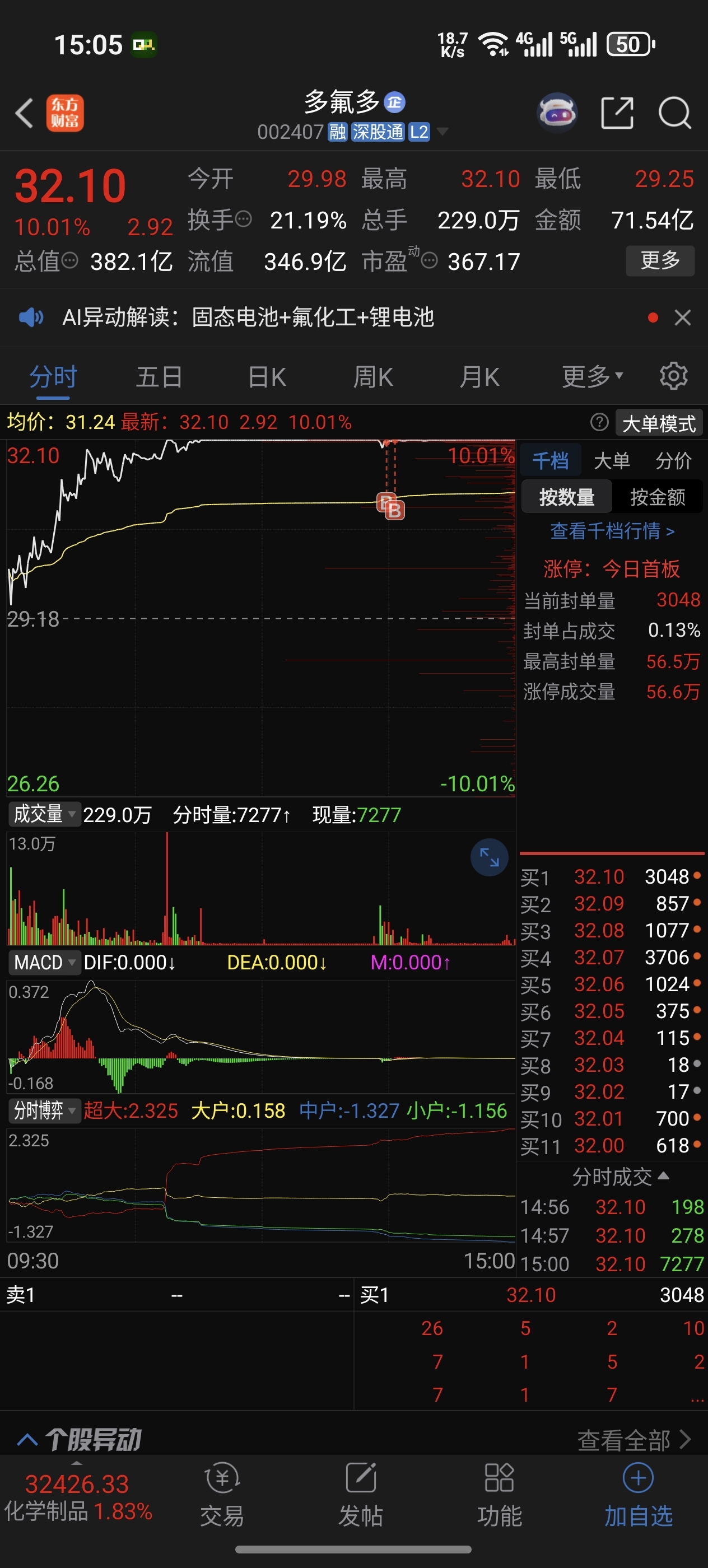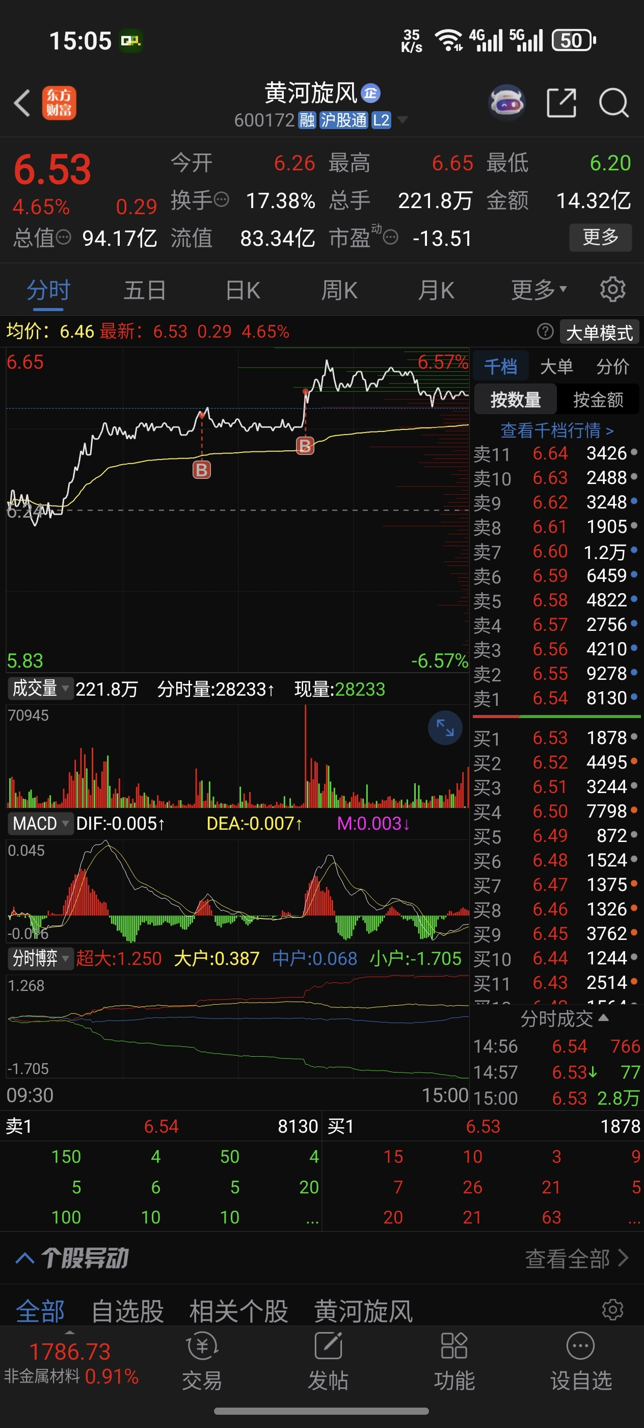 $多氟多(SZ002407)$ $龙蟠科技(SH603906)$ $黄河旋风(SH600172)$ 今天汇绿没有卖好,少卖了几个点。盯了一天盘,也没几个出手的好机会,下午手痒小仓位打了个烂板,还有两个上影线,周一怕是有点恼火咯