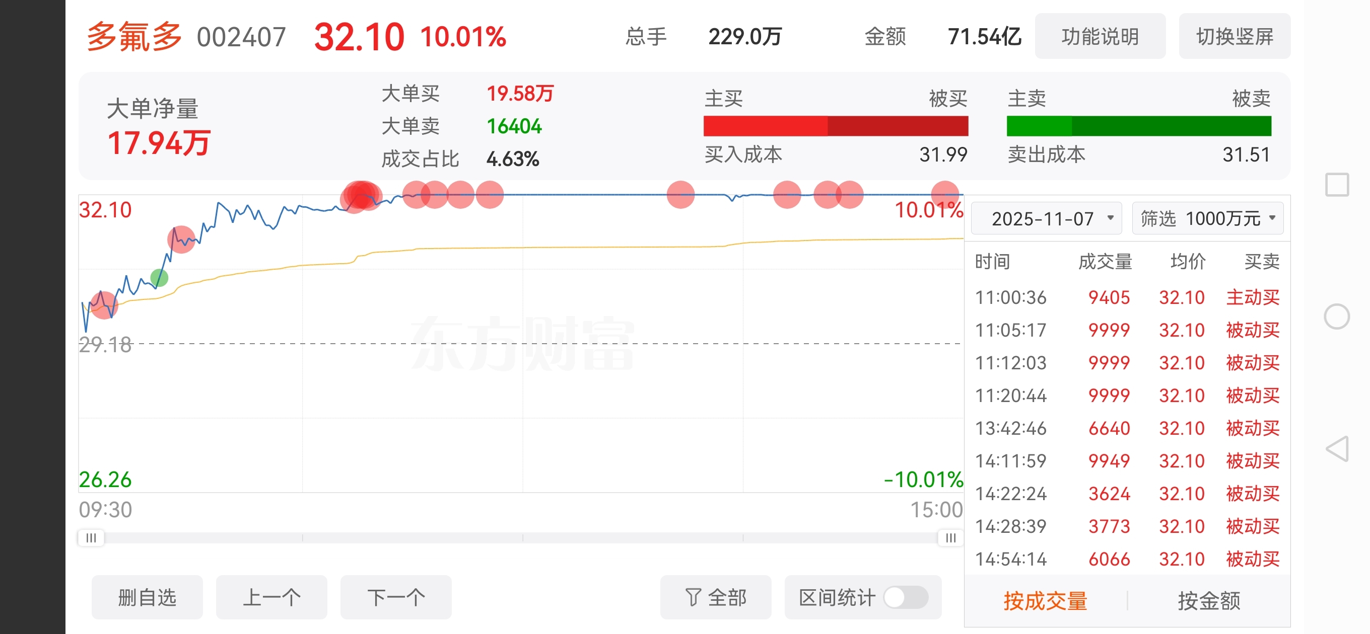 $多氟多(SZ002407)$ 有人说多氟多多次炸板是主力出货,敢问各位散户都能千万进货,明显受涨价驱动,主力看涨,涨停板吸筹