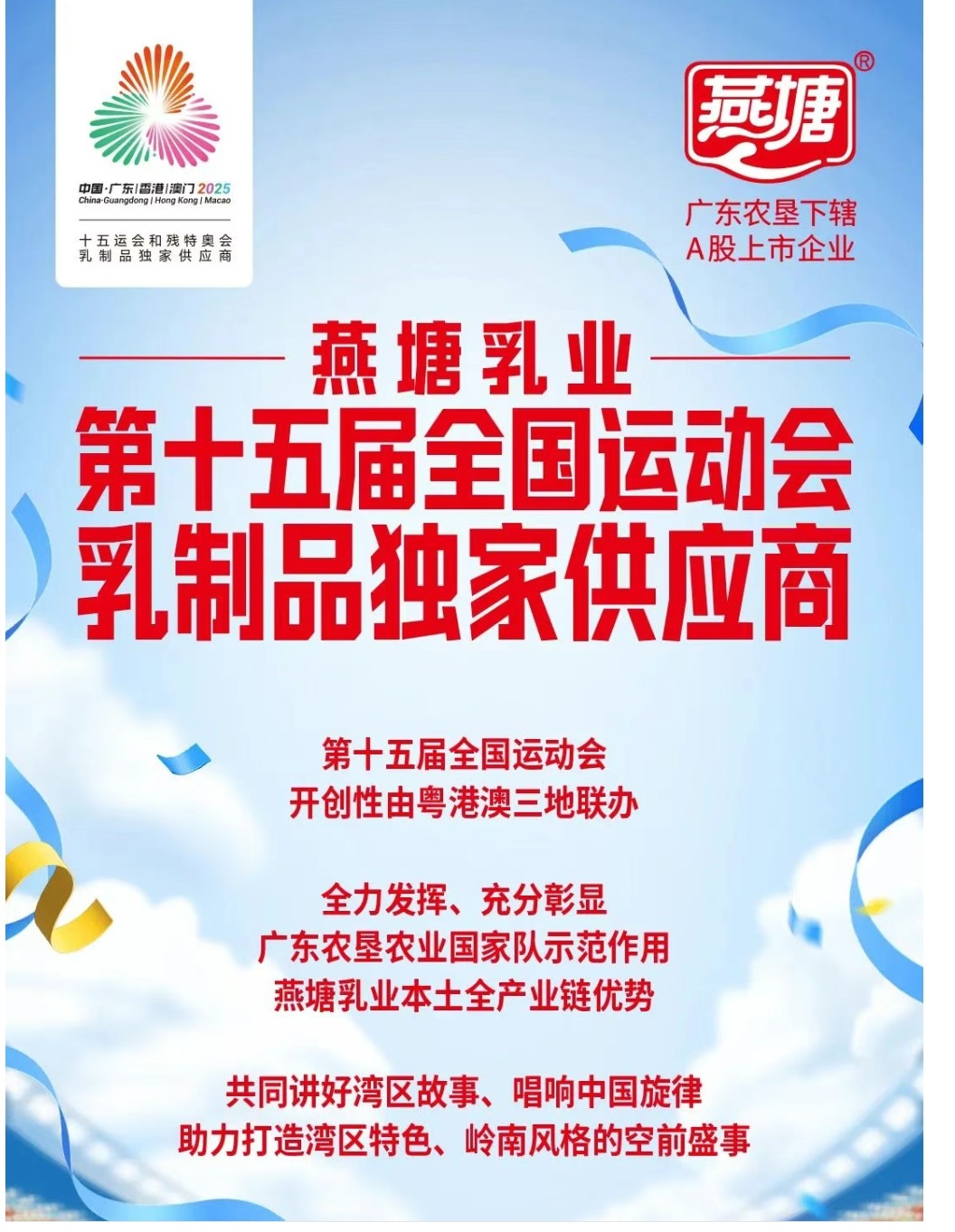 $多氟多(SZ002407)$ $燕塘乳业(SZ002732)$ 燕塘乳业全运会独家供应商