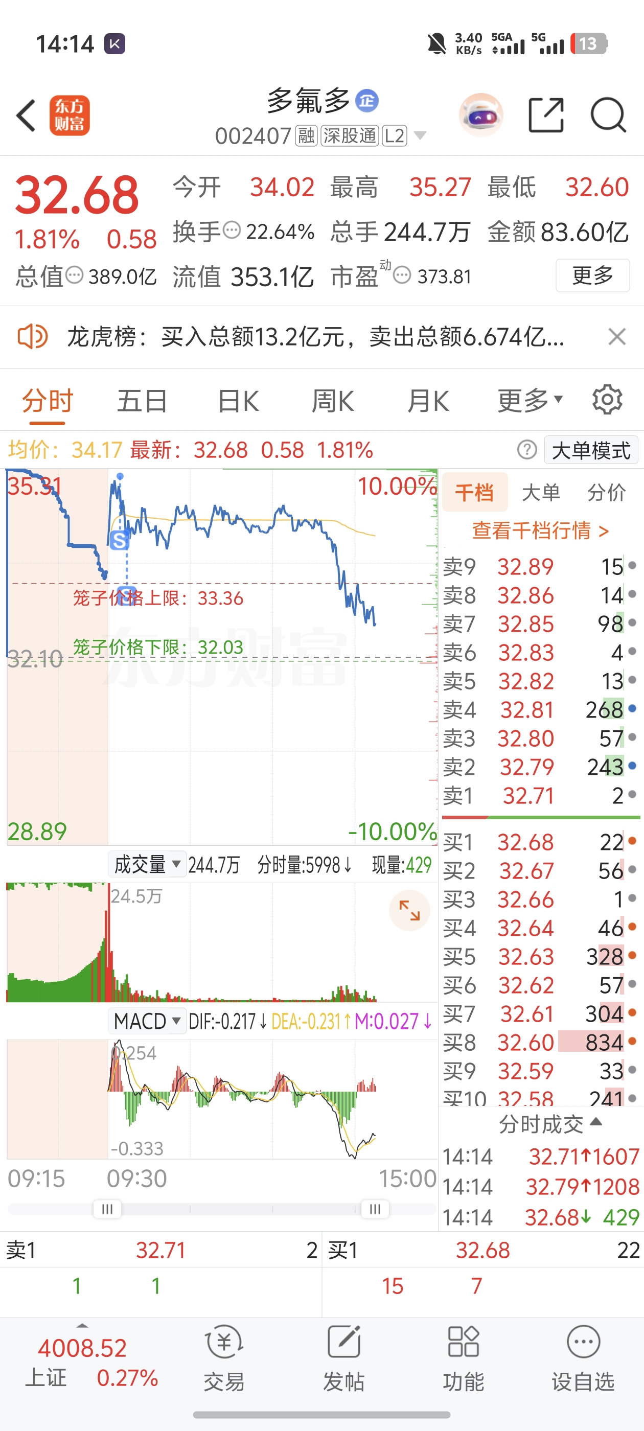 $多氟多(SZ002407)$ 逃顶了 后面接回来 留下的家人们吃肉