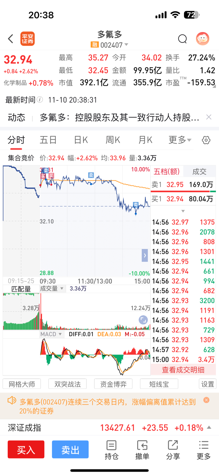$多氟多(SZ002407)$ 早上9点不卖在蕞低位卖了,赚八九千不要现在就一千