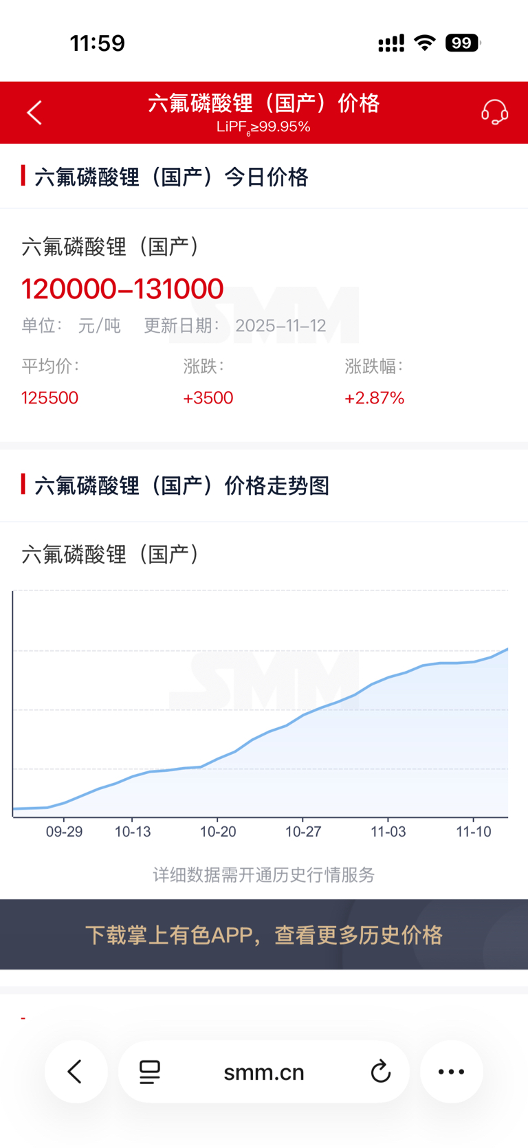 原材料碳酸锂涨1000,但6F涨了3500,拿着吧。