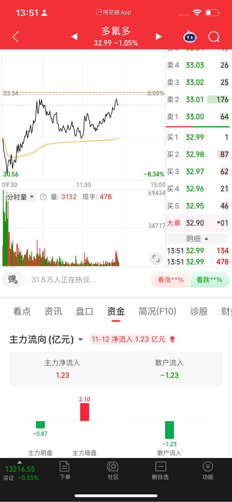$多氟多(SZ002407)$ 暗盘最新数据,主力一直在偷吃