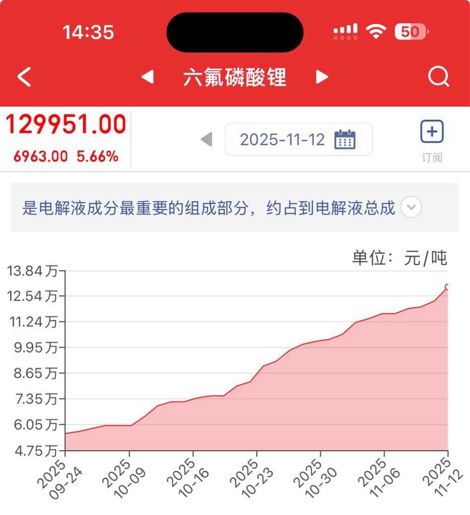 $多氟多(SZ002407)$ 11月12日六氟磷酸锂大涨7000一吨,还在卖股票的人是傻吗?明年涨到2800一股!