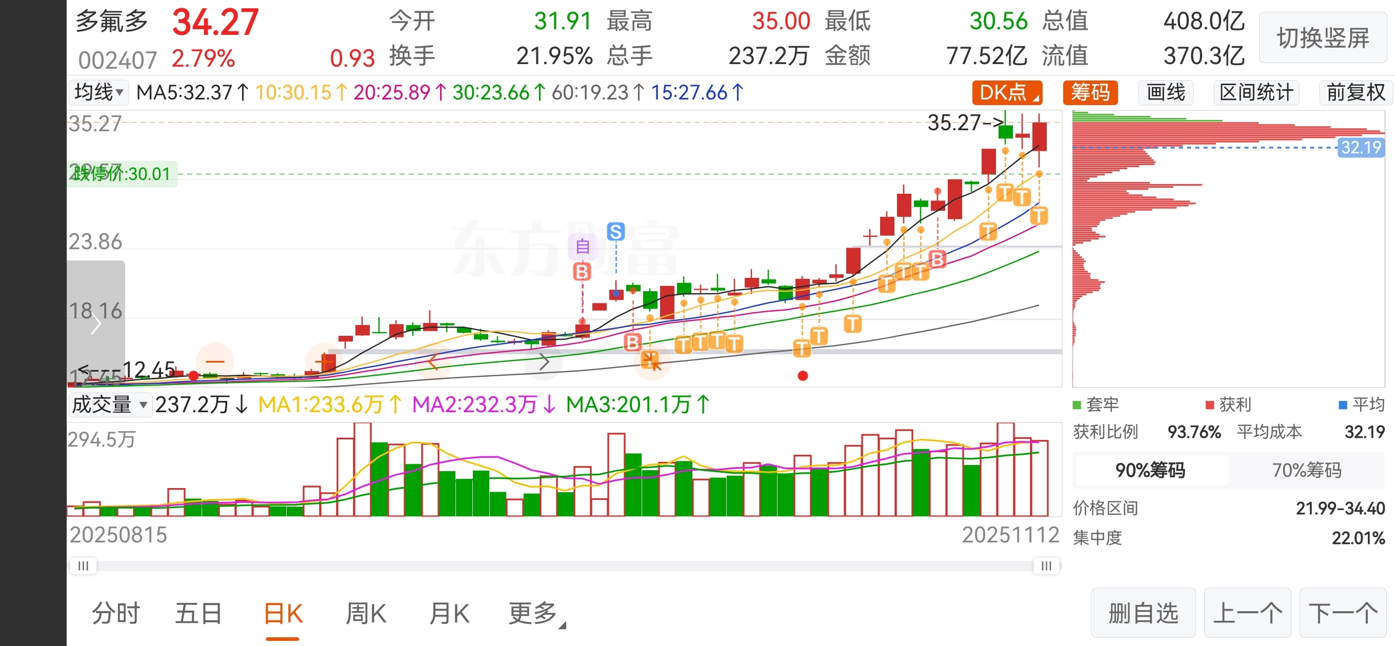 $多氟多(SZ002407)$ 符合今日判断,天际确实强,今日自己主动进监管,看明天天际反馈别太大就行,另外六氟板块谁带头涨都不会影响多多中军核心绝对地位,不涨停就会不停涨,慢就是快,成本早已为负,涨价逻辑不变,Q4和25年业绩明牌翻倍,快来唱空,丝毫不影响我做