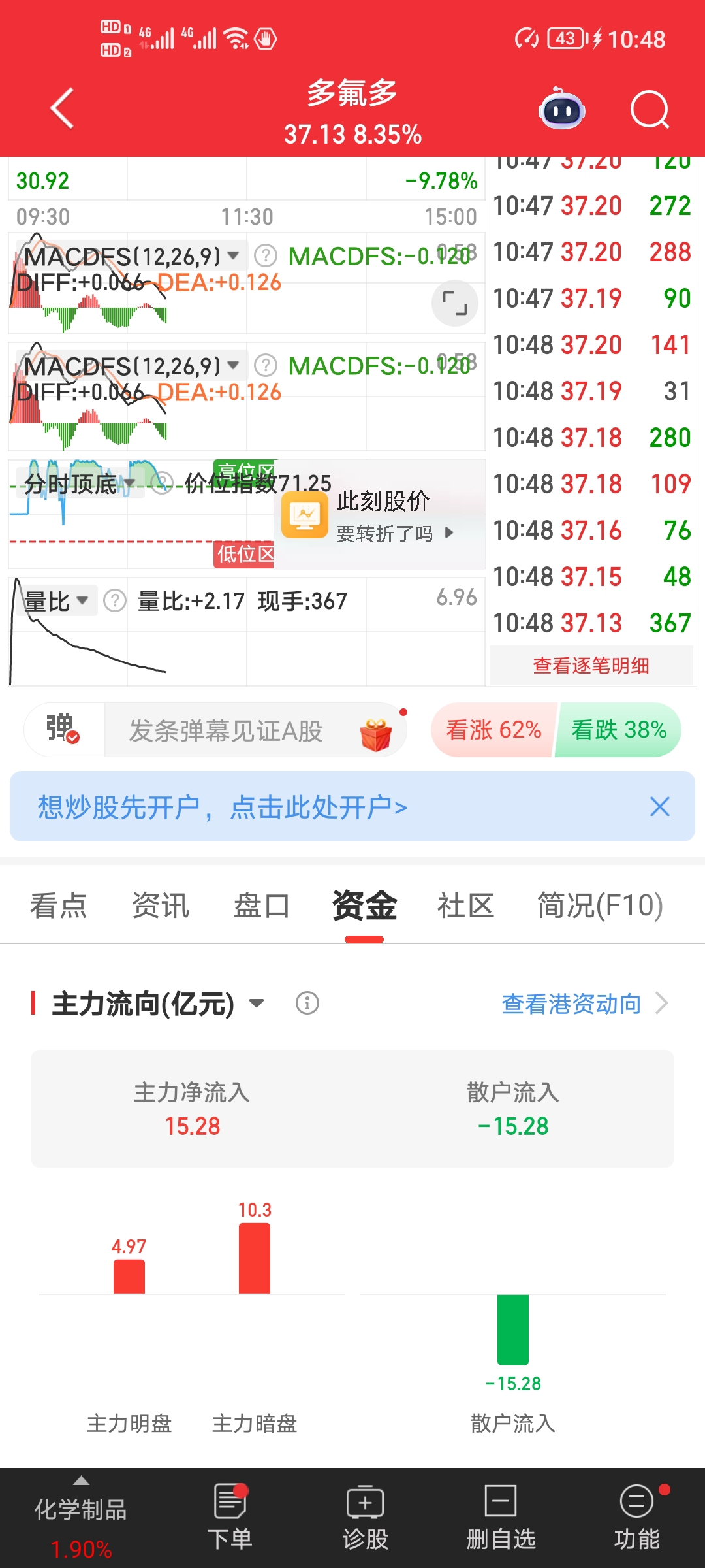 $多氟多(SZ002407)$ 今天的主力真的不狡猾,一点点振动家人们就拿不住,洗出去这么多。