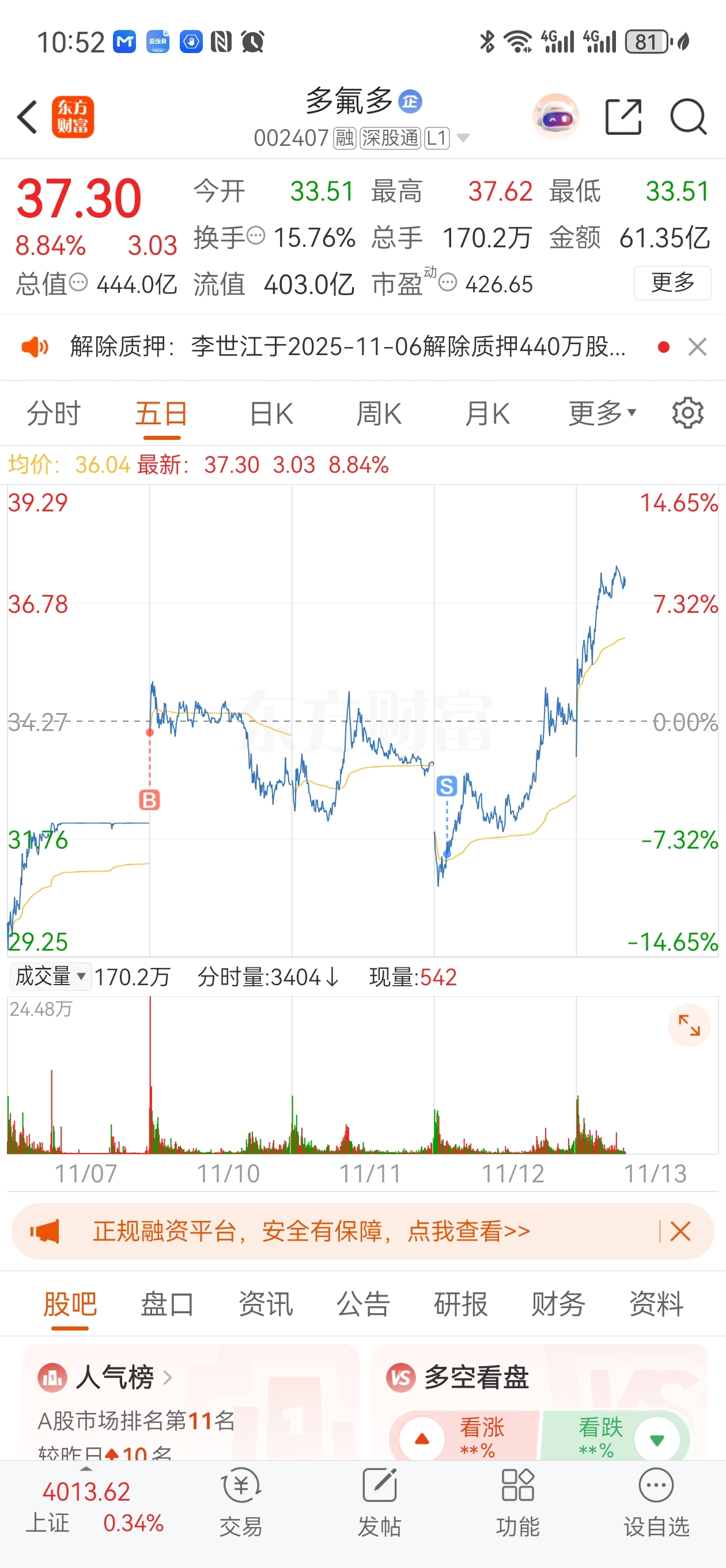 $多氟多(SZ002407)$ 我想删自己两巴掌