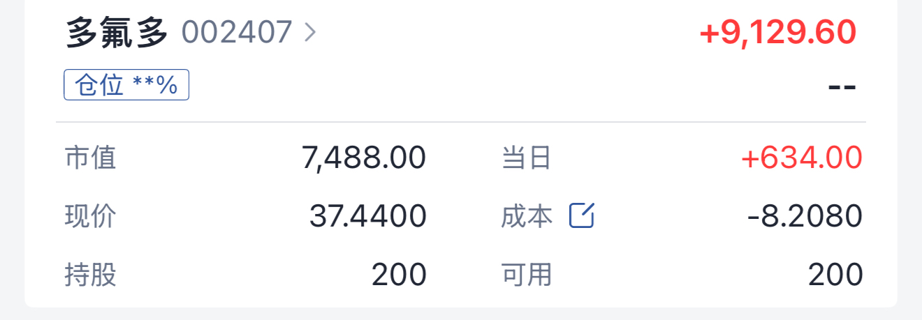 $多氟多(SZ002407)$ 挣1万我就收手。