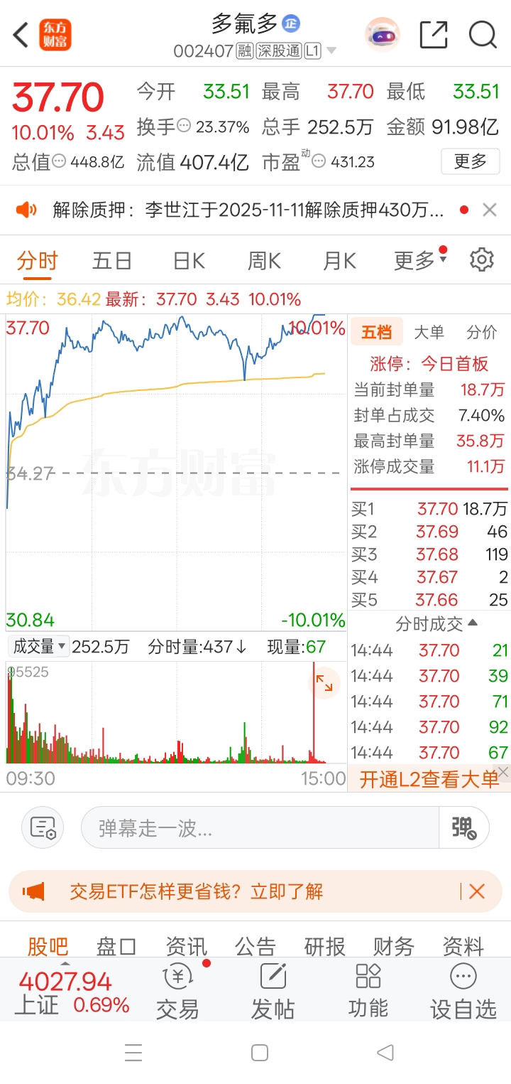 $多氟多(SZ002407)$ 多氟多到位,兄弟们,吃到肉了吧走自己的路让别人说去吧!
