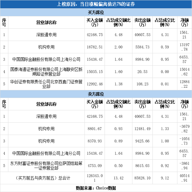 今日龙虎榜单上出现了深股通的身影,占据了买一、卖一的位置,净买入1561.21万元,占当日成交总额的0.17%。