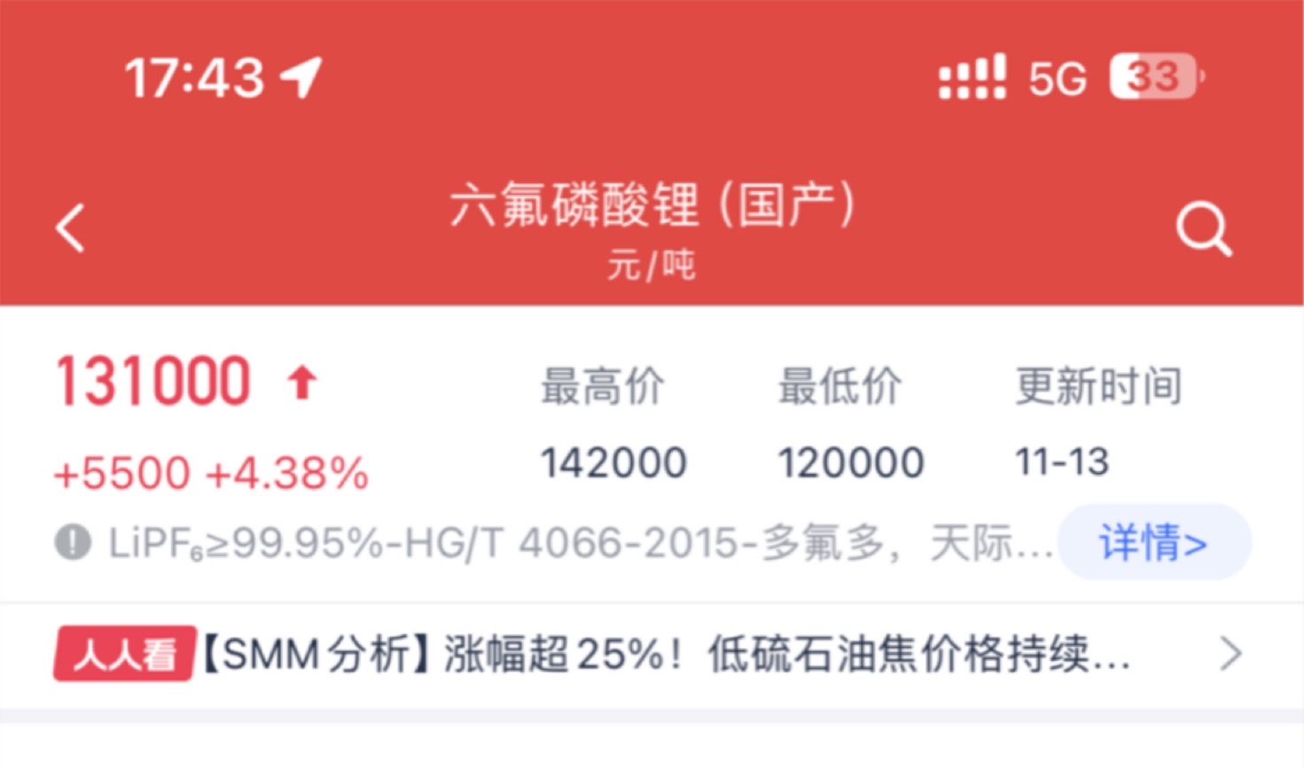 $多氟多(SZ002407)$ 13万了,持续涨价中